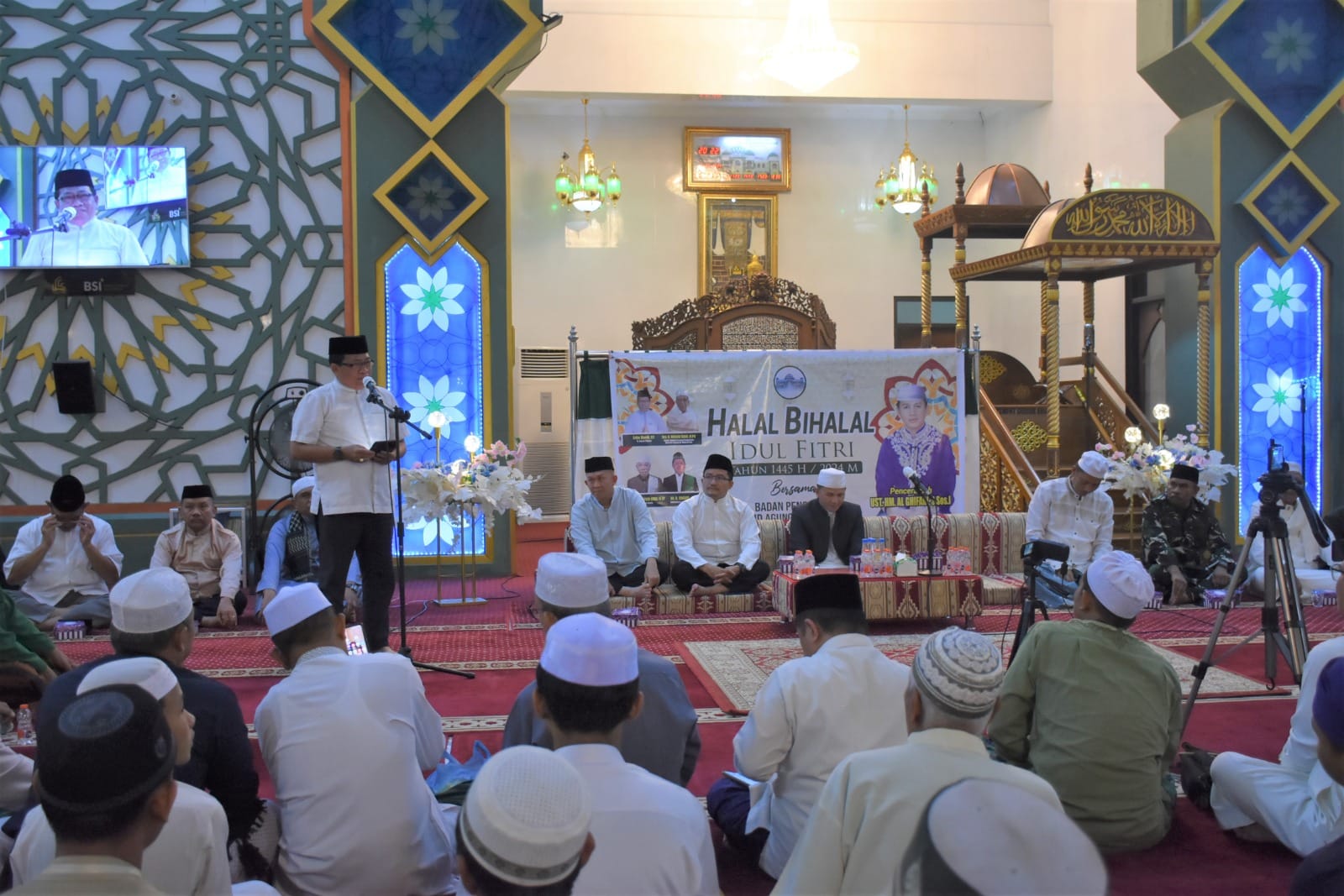 TEWENEWS, KUALA KAPUAS – Pj Bupati Kapuas Erlin Hardi menghadiri kegiatan Halal Bihalal Idul Fitri tahun 1445 H/2024 M yang digelar Badan Pengelola Masjid Agung Al Mukarram Kapuas, Kamis (18/4/2024).