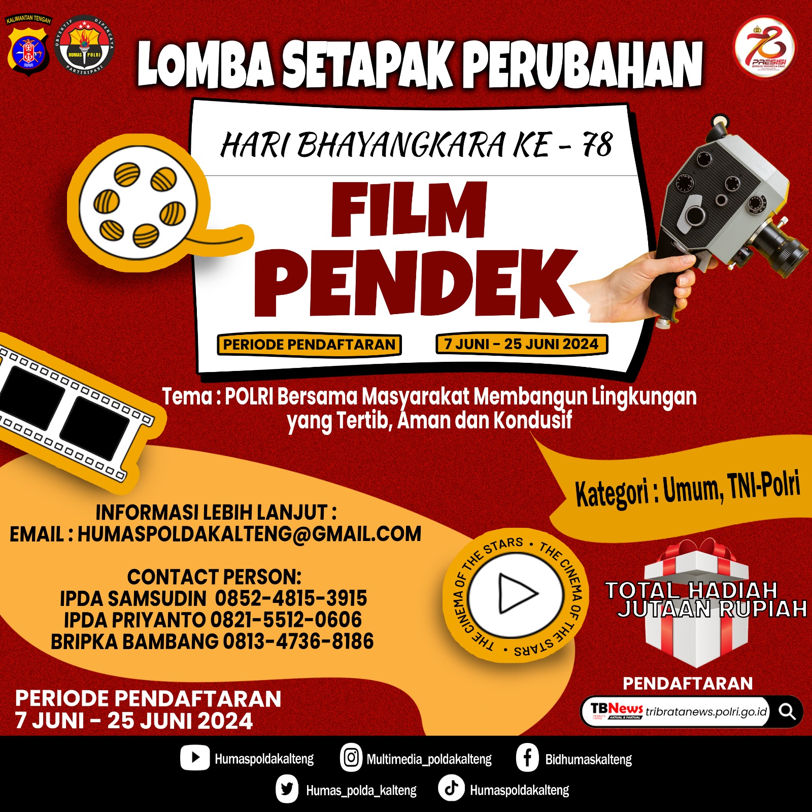 Ayo Masyarakat Kalteng, Ikuti dan Meriahkan Lomba Hari Bhayangkara ke-78 Bertajuk Setapak Perubahan