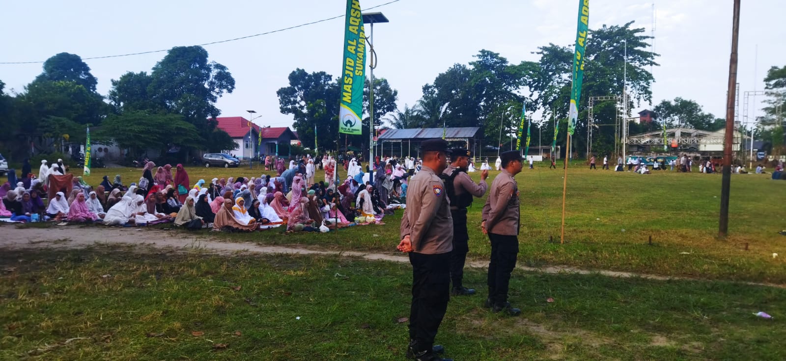 Masyarakat yang melaksanakan shalat Idul Adha kurang lebih sebanyak 500 orang dan Kegiatan pengamanan dilaksanakan pada 06.30 Wib. Waktu setempat dan dipimpin oleh Padal IPDA Saut Mangapul Napitupulu, S.H.