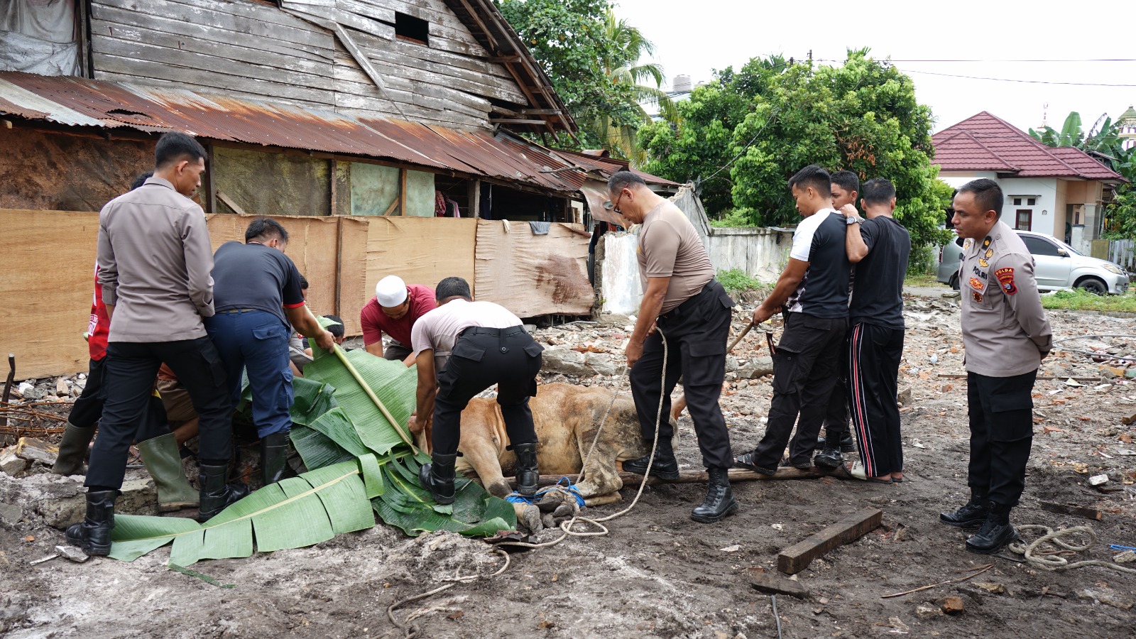 PALANGKA RAYA – Rumah Sakit (Rumkit) Bhayangkara Tingkat III Palangka Raya Polda Kalteng melaksanakan penyembelihan dan pembagian daging kurban dalam rangka perayaan Hari Raya Idul Adha 1445 Hijriah.