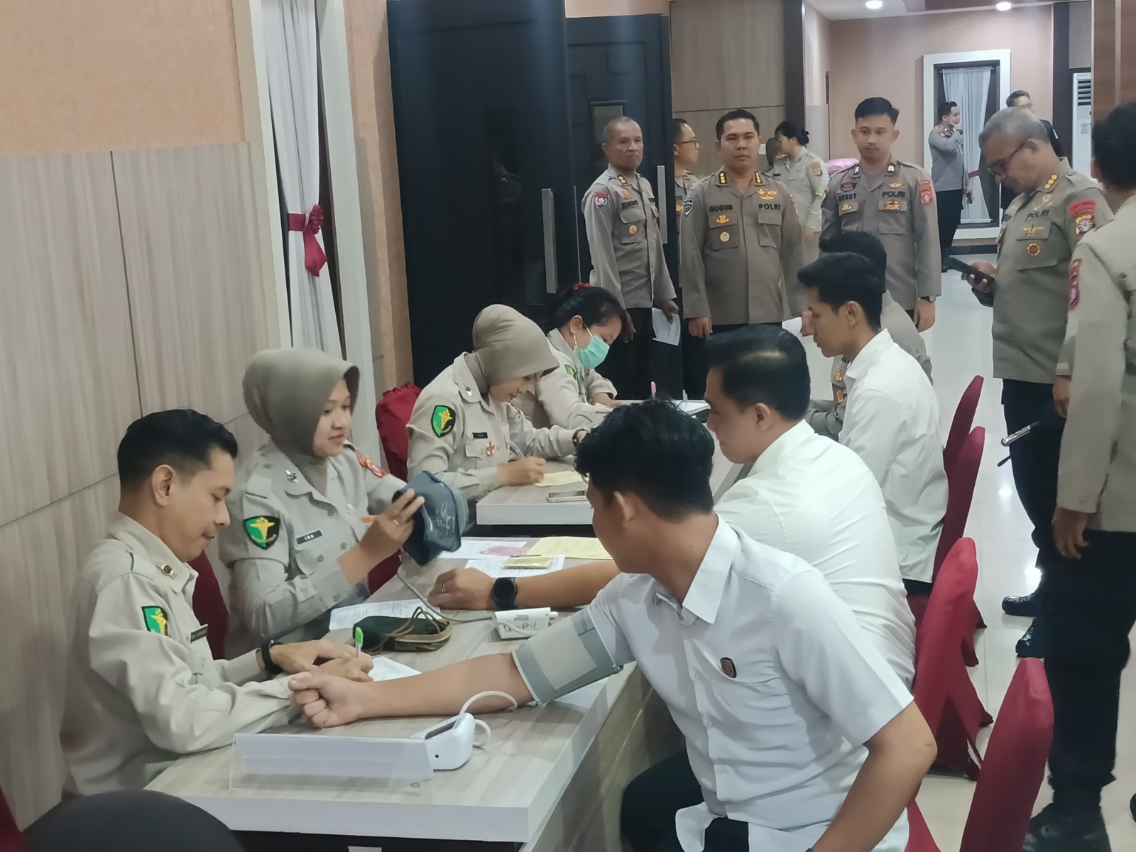 Peduli Kemanusiaan, Personel Dittahti Polda Kalteng Ikuti Giat Donor Darah