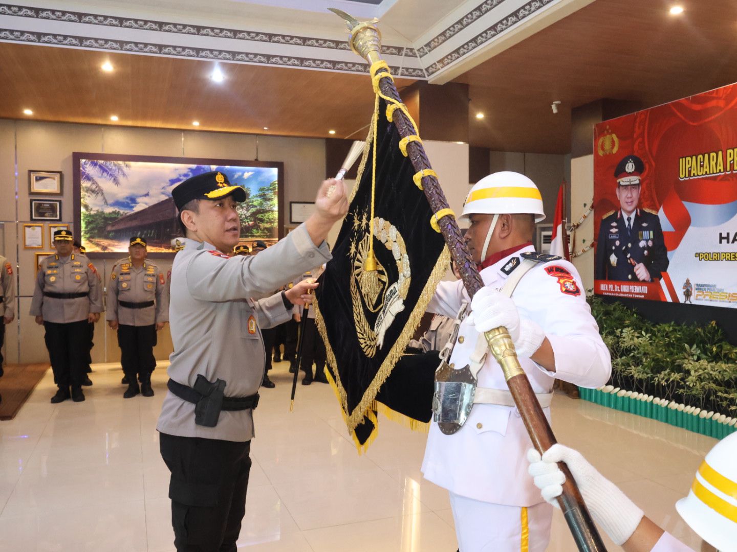 Palangka Raya – Kepolisian Daerah (Polda) Kalimantan Tengah (Kalteng) menggelar upacara pemuliaan nilai-nilai Tribrata dalam rangka memperingati hari Bhayangkara ke-78 tahun 2024 yang berlangsung di Loby Mapolda setempat, Kamis (20/6/2024).