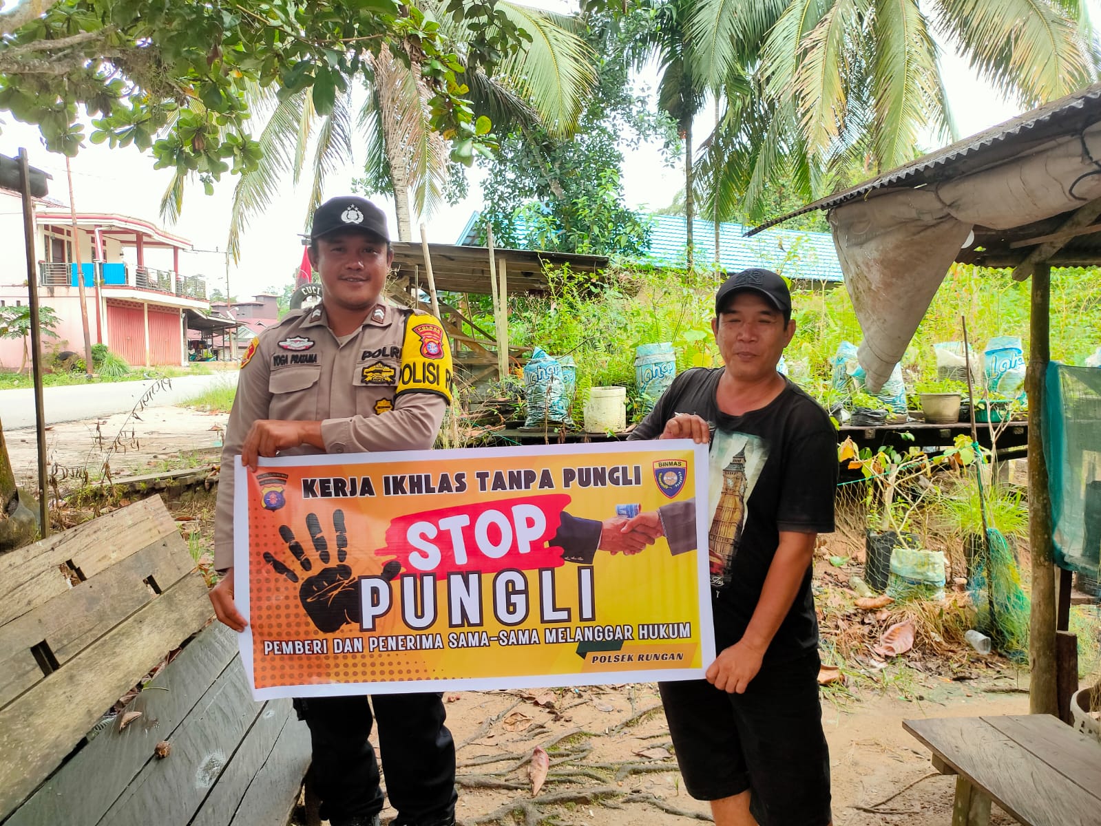 Polres Gunung Mas – Personel Polsek Rungan, Polda Kalteng, Gunung Mas, Kalimantan Tengah, mengedukasi kepada masyarakat setempat tentang bahaya pungutan liar. Langkah ini dilakukan sebagai upaya keras untuk memerangi praktik ilegal ini dan memberikan informasi kepada masyarakat mengenai hak-hak mereka serta konsekuensi hukum yang terkait dengan pungutan liar. Rabu (19/6/24) sekira pukul 12.00 WIB.