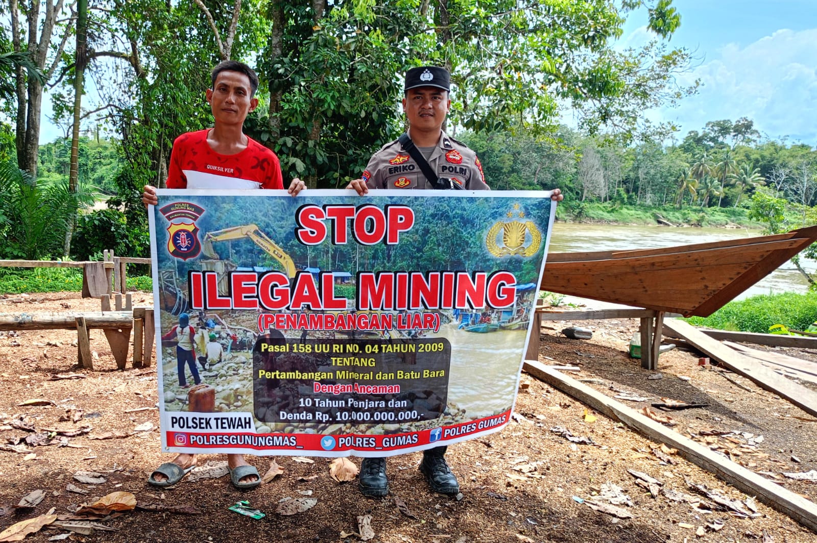 Saat dikonfirmasi Kapolres Gunung Mas AKBP Theodorus Priyo Santosa, S,I,K, melalui Kapolsek Tewah Iptu Imam Maliki, S.Tr.K., menjelaskan bahwa aktivitas tambang ilegal dapat merusak ekosistem lingkungan, mengurangi kualitas udara, serta memengaruhi sumber air yang digunakan oleh masyarakat. “Kami ingin masyarakat kami lebih sadar akan dampak negatif tambang ilegal terhadap lingkungan dan kesehatan mereka sendiri. Kita semua bertanggung jawab untuk menjaga dan melindungi alam ini,” kata Kapolsek.