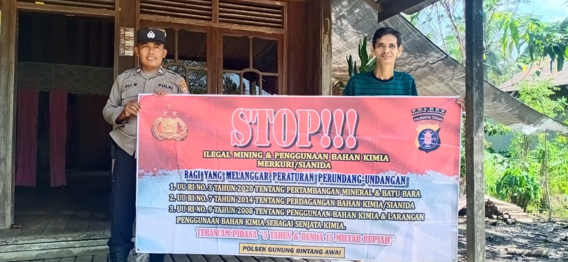 Kapolres Barsel AKBP Asep Bangbang Saputra, S.I.K. melalui Kapolsek GB Awai Iptu Bimo Setyawan, S.H. sosialisasi ini merupakan salah satu dari program fokus Polda Kalteng dalam memberantas ilegal mining dan bahan kimia merkuri/sianida.
