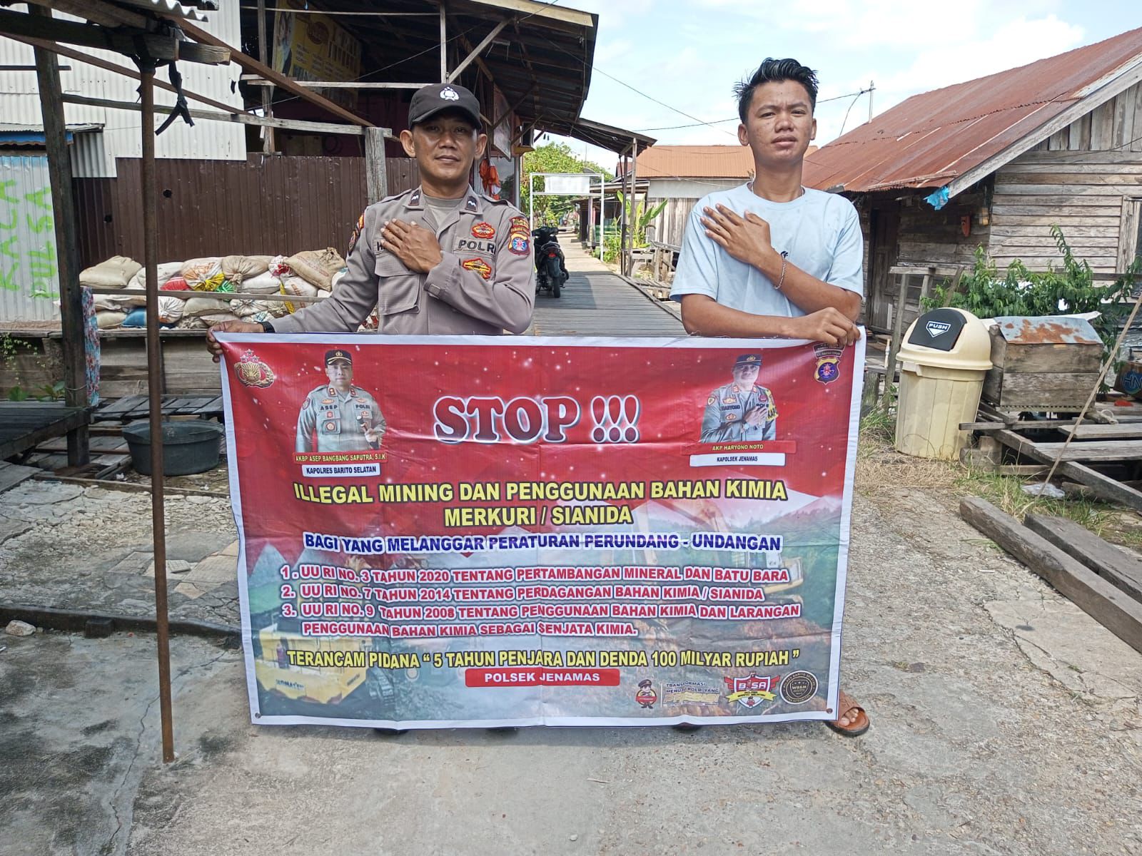 Kapolres Barsel AKBP Asep Bangbang Saputra, S.I.K. melalui Kapolsek Jenamas AKP Haryono Noto mengatakan, sosialisasi ini merupakan salah satu dari fokus Polda Kalteng dalam memberantas ilegal mining dan bahan kimia merkuri/sianida.
