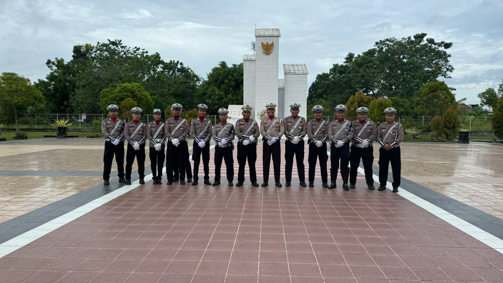 Jelang Hari Bhayangkara ke-78. Ditlantas Polda Kalteng Ikuti Upacara Ziarah Rombongan di Taman Makam Pahlawan