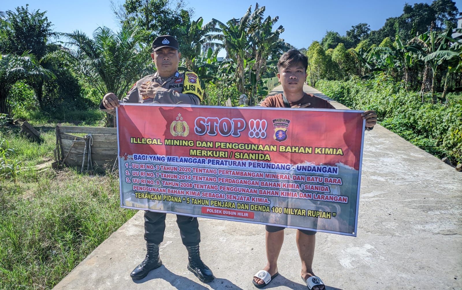 Polres Barsel – Mencegah terjadinya penambangan liar serta penyalahgunaan dan peredaran bahan-bahan kimia dikalangan masyarakat, Personel Polsek Dusun Hilir (Dushil), jajaran Polres Barsel, Polda Kalteng. gencar melaksanakan sosialisasi larangan.