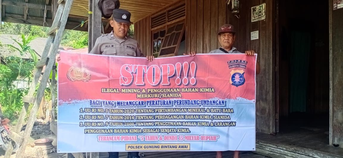 Kapolres Barsel AKBP Asep Bangbang Saputra, S.I.K. melalui Kapolsek GB Awai Iptu Bimo Setyawan, S.H. sosialisasi ini merupakan salah satu dari program fokus Polda Kalteng dalam memberantas ilegal mining dan bahan kimia merkuri/sianida.