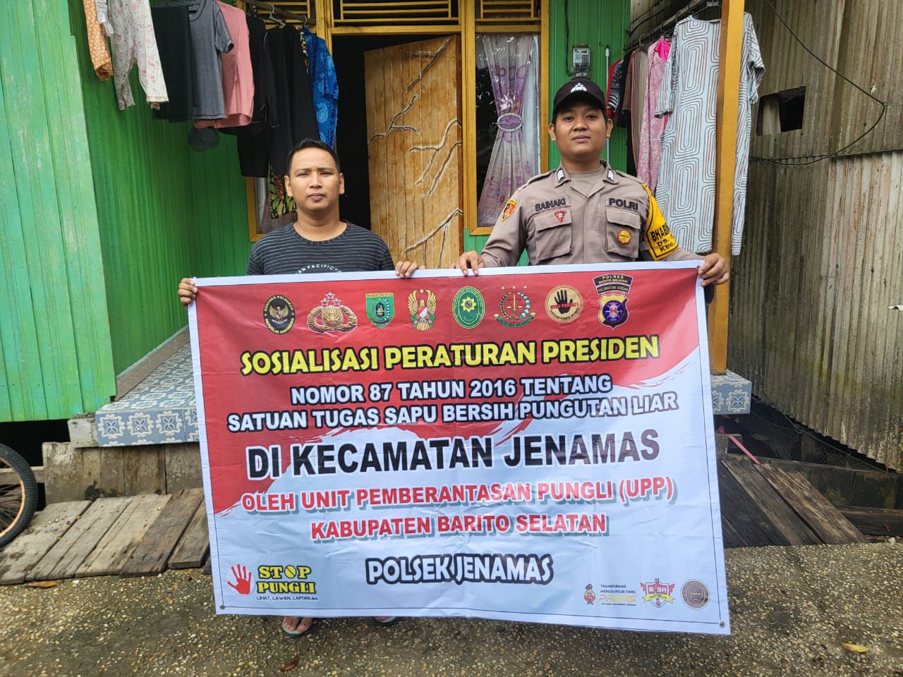 Kegiatan Sosialisasi peraturan Presiden nomor 87 tahun 2016 tentang satuan tugas sapu bersih pungutan liar (Satgas Saber Pungli) terus dilaksanakan oleh Satgas Saber Pungli Polsek Jenamas dengan terus menyambangi masyarakat maupun perkantoran yang memiliki jasa pelayanan masyarakat untuk memberikan sosialisasi dan edukasi.