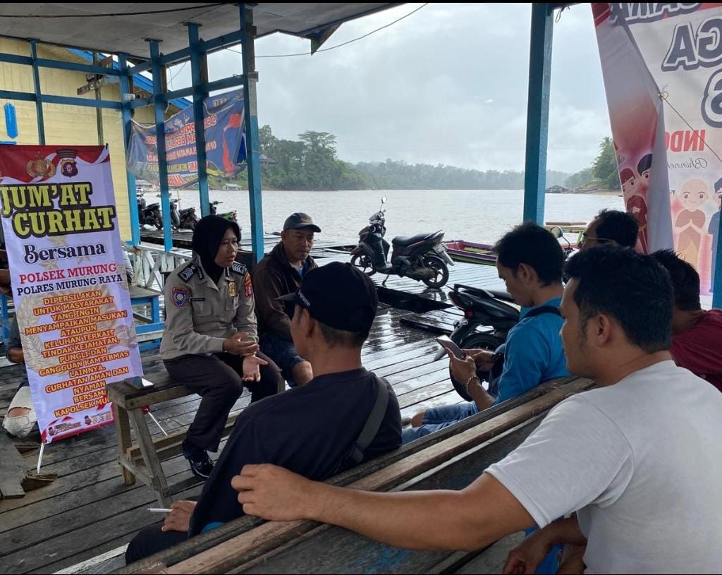Polres Murung Raya – Kapolsek Murung Ipda Catur Iga Akbar, S.H melalui Ps. Kanit Binmas Bripka Rati Dwi Jayati melaksanakan Jumat Curhat dengan bertatap muka langsung sekaligus mendengarkan aspirasi warga di Pelabuhan Tira Tangka Balang Kota Puruk Cahu, Jumat (9/8/2024) pukul 13.00 WIB.