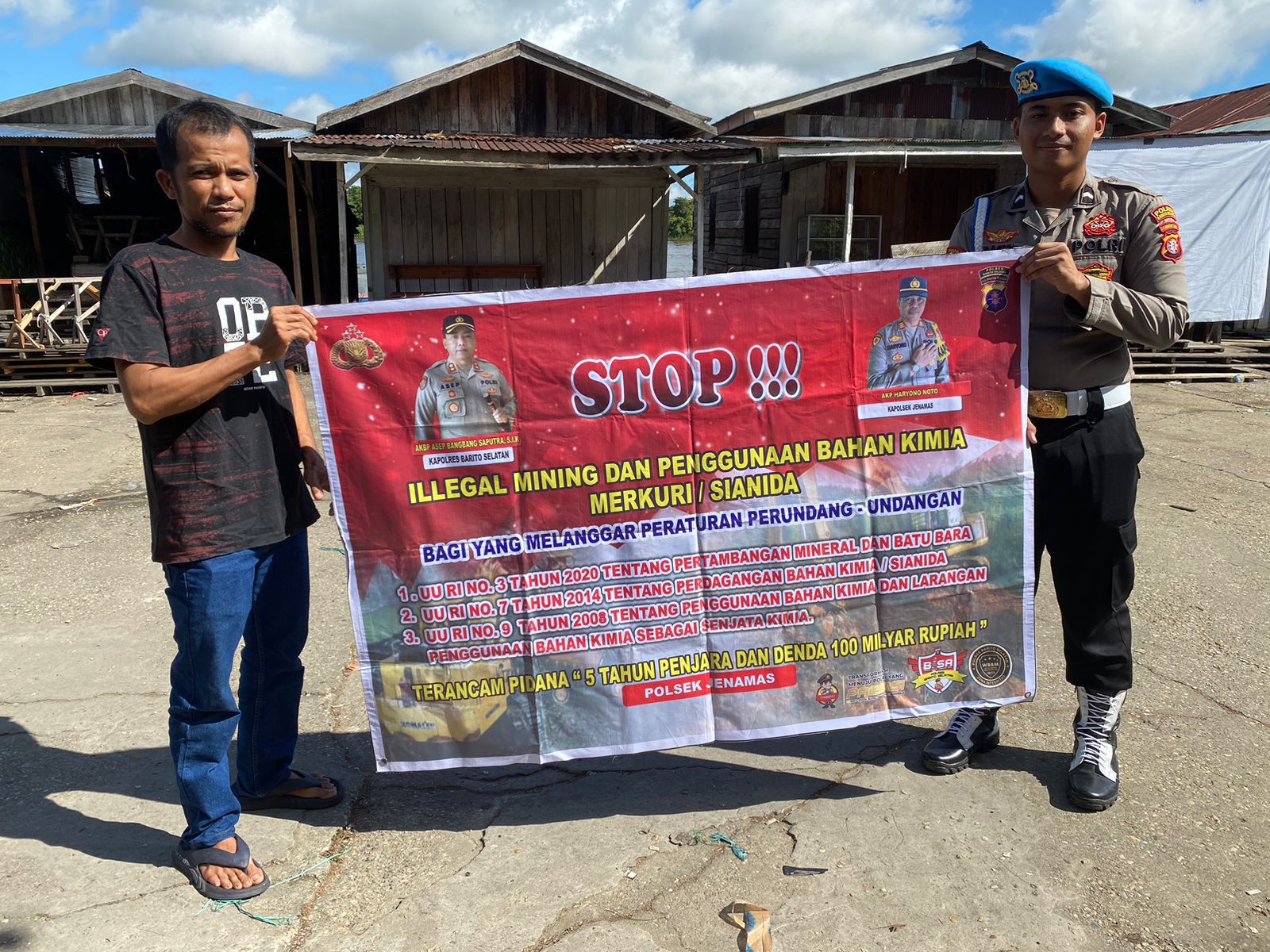 Kapolres Barsel AKBP Asep Bangbang Saputra, S.I.K. melalui Kapolsek Jenamas AKP Haryono Noto mengatakan, sosialisasi ini merupakan salah satu dari fokus Polda Kalteng dalam memberantas ilegal mining dan bahan kimia merkuri/sianida.