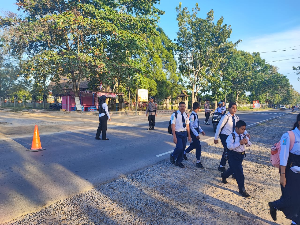Berikan Rasa aman, Brimob Kalteng Gencarkan Strong Point di Penyeberangan Sekolah