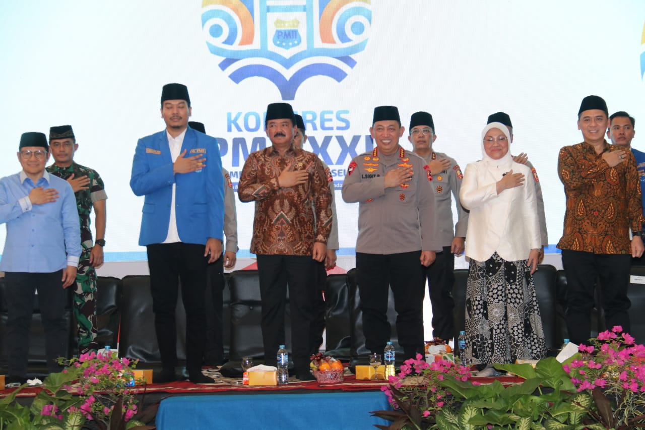 Palembang. Kapolri Jenderal Polisi Drs. Listyo Sigit Prabowo mendampingi Menteri Politik, Hukum, dan Keamanan (Menkopolhukam) Hadi Tjahjanto menghadiri Kongres XXI Pergerakan Mahasiswa Islam Indonesia (PMII) di Palembang, Sumatra Barat (Sumbar). Kehadiran keduanya disambut langsung oleh Ketua PB PMII Muhammad Abdullah Syukri.