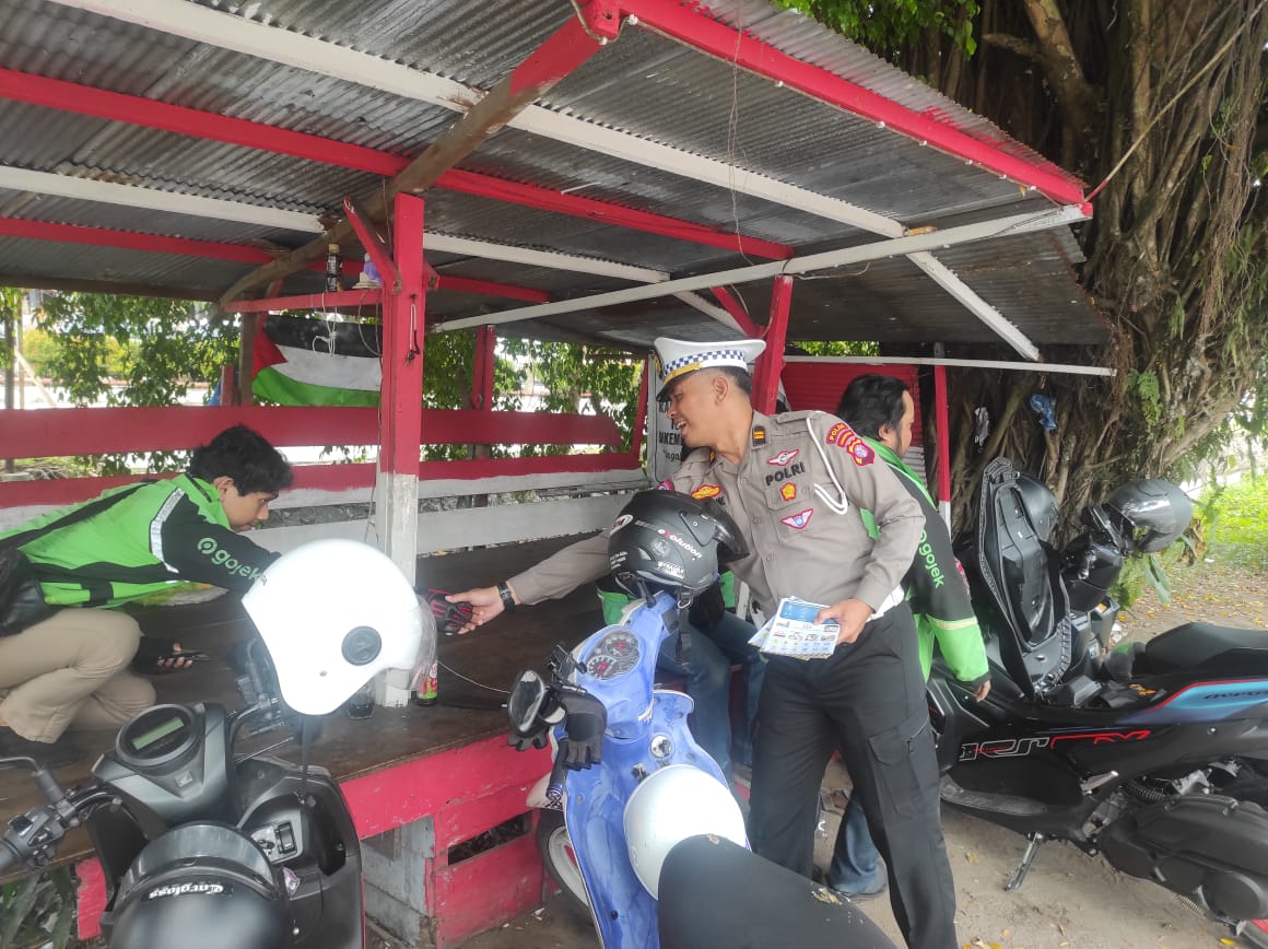 Palangka Raya – Direktorat Lalu Lintas Polda Kalteng melaksanakan Pendidikan Masyarakat Lalu Lintas (Dikmas Lantas) di pangkalan ojek online Jl. RTA Milono, Kota Palangka Raya, Selasa (30/7/2024) siang.