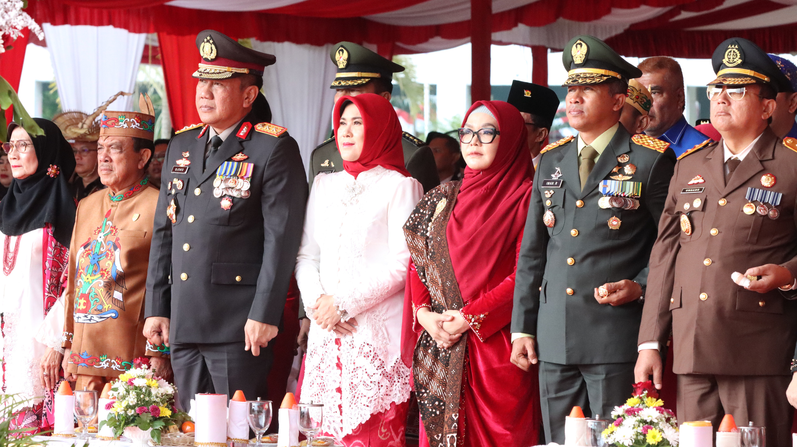 Palangka Raya – Kapolda Kalimantan Tengah (Kalteng) Irjen Pol Drs. Djoko Poerwanto, didampingi Ketua Bhayangkari Kalteng Ibu Irna Djoko menghadiri upacara peringatan hari kemerdekaan Republik Indonesia (RI) ke-79 di Halaman Kantor Gubernur, Jl. RTA. Milono Km.01, Kota Palangka Raya, Sabtu (17/08/2024) pagi.