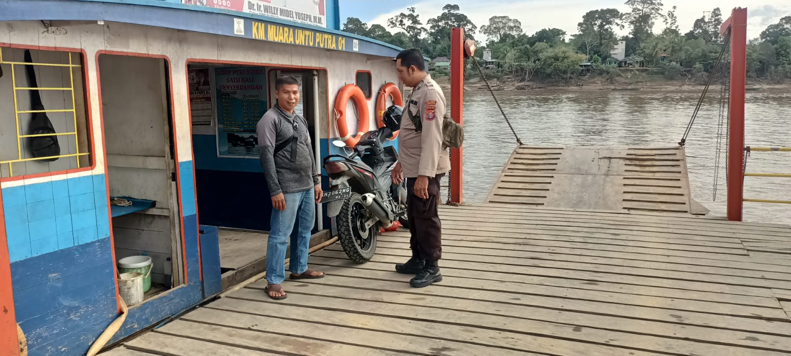 Dalam kegiatan ini Bhabinkamtibmas berdialogis dengan Nahkoda Kapal dalam rangka meninjau aktivitas penyebrangan.
