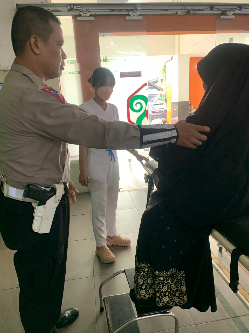 “Saat saya melakukan pengaturan dilokasi tersebut saya melihat ada ibu-ibu pejalan kaki lewat disamping saya saat melaksanakan pengaturan, tidak lama kemudian ibu itu duduk dan langsung terbaring pingsan jadi saya langsung inisiatif membawa ibu tersebut ke rumah sakit terdekat untuk mendapatkan pemeriksaan tentang apa yang dialami ibu tersebut,” jelas Aiptu Cipwanto.