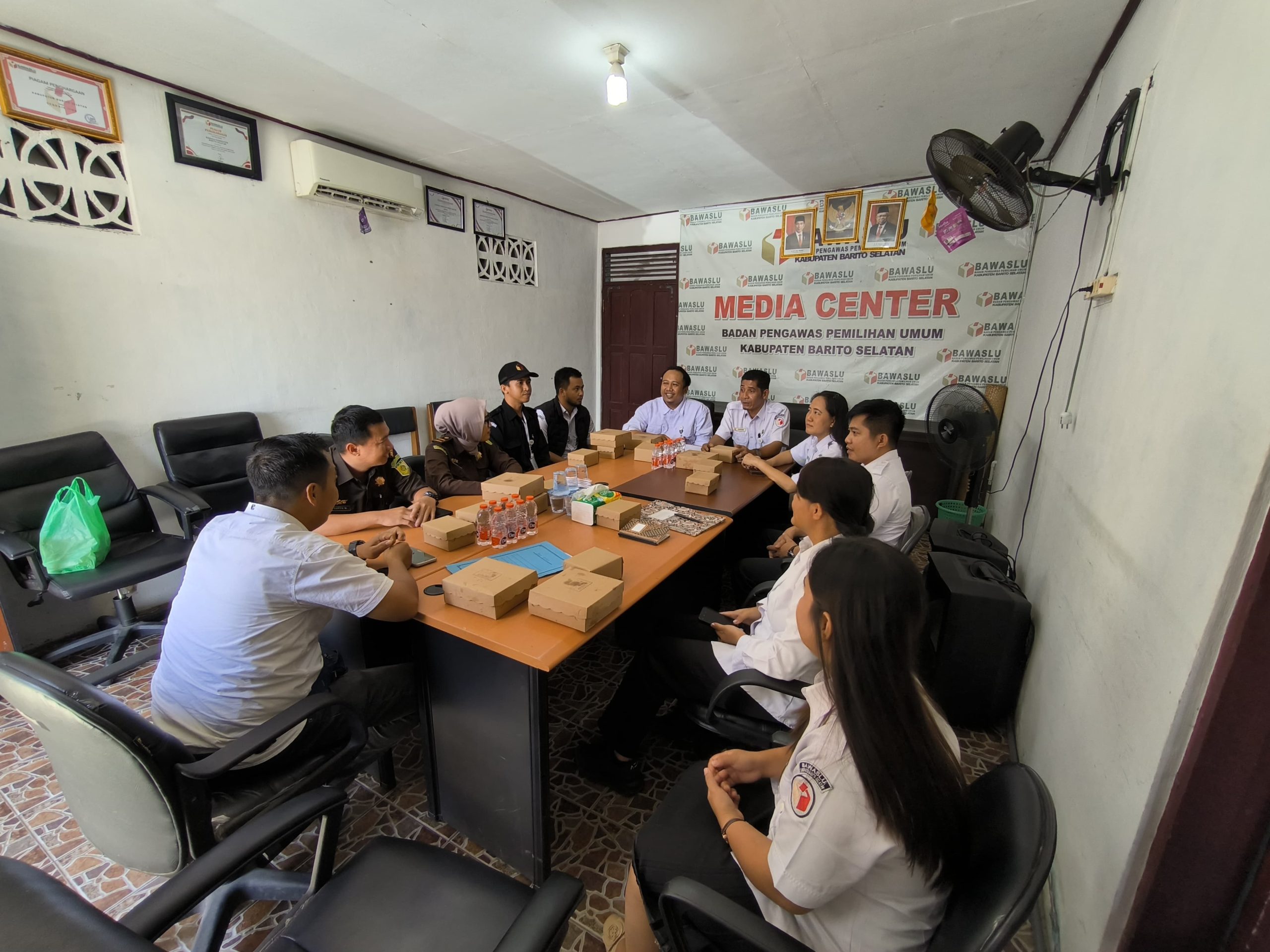 Polres Barsel – Personel gabungan Satuan Tugas sentra penegakkan hukum terpadu (Gakkumdu) menggelar rapat bertempat di sekretariat kantor Bawaslu setempat, Selasa (28/8/2024) siang.