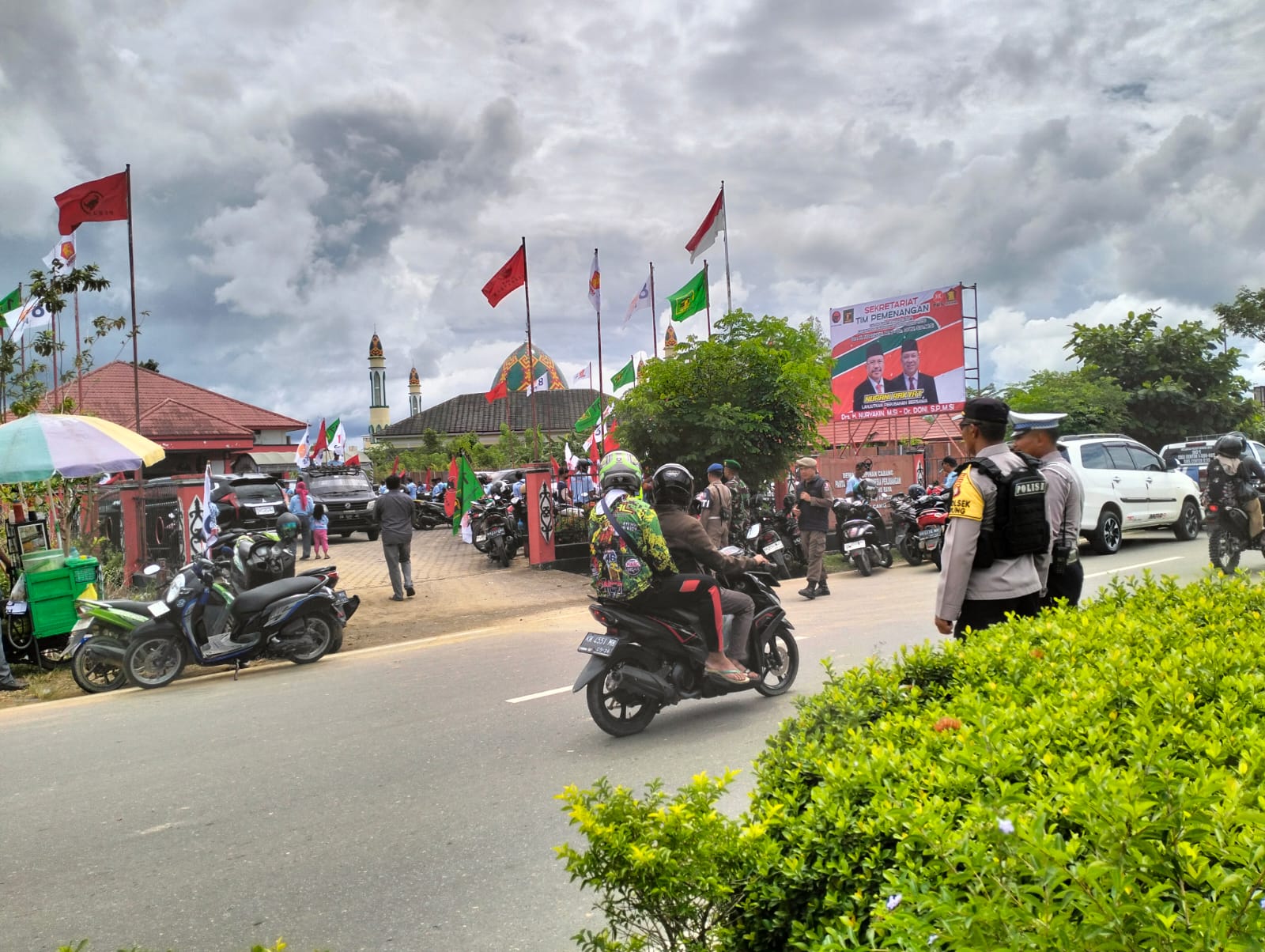 Puruk Cahu – Polsek Murung, Polres Murung Raya (Mura) Polda Kalteng, melaksanakan pengamananan jalannya pendaftaran Calon Bupati dan Wakil Bupati Murung Raya dihari terakhir bertempat di kantor PDIP Jl. Jenderal Sudirman Puruk Cahu, Kamis (29/08/2024) siang.