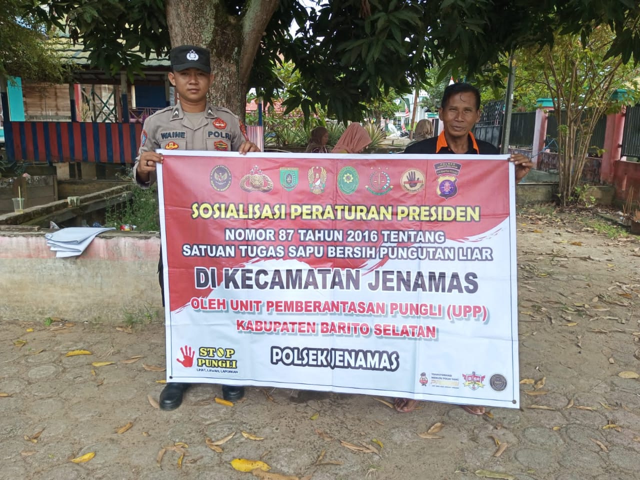 Kegiatan Sosialisasi peraturan Presiden nomor 87 tahun 2016 tentang satuan tugas sapu bersih pungutan liar (Satgas Saber Pungli) terus dilaksanakan oleh Satgas Saber Pungli Polsek Jenamas dengan terus menyambangi masyarakat maupun perkantoran yang memiliki jasa pelayanan masyarakat untuk memberikan sosialisasi dan edukasi.
