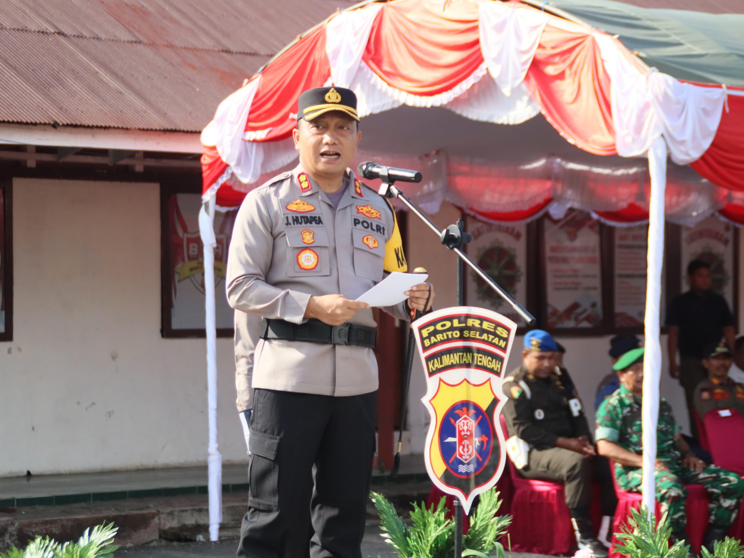 Bertindak sebagai pimpinan apel yaitu Kapolres Barsel AKBP Jecson R. Hutapea, S.I.K., M.H. dengan dihadiri unsur Forkopimda atau yang mewakili serta para tamu undangan dan peserta apel Personel gabungan TNI, Polri, Satpol PP dan Dishub Kab. Barsel.