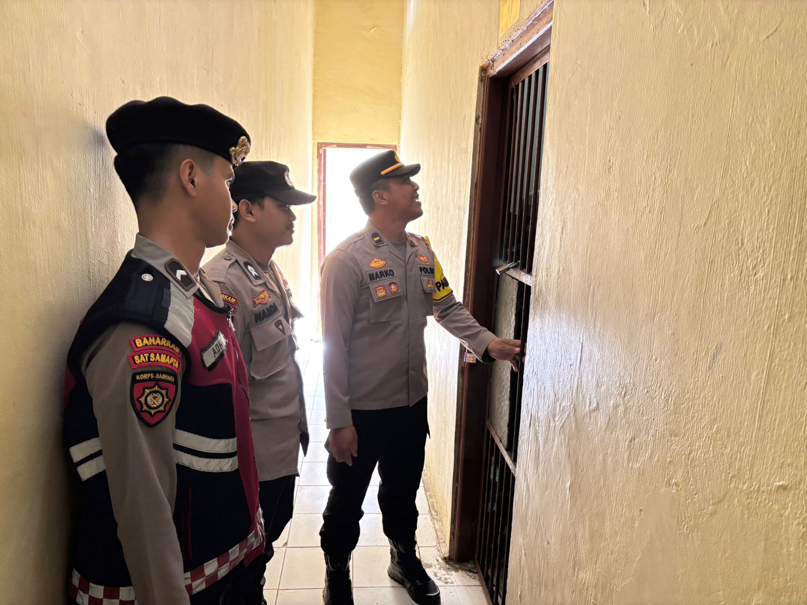 Murung Raya – Petugas piket jaga tahanan Polres Murung Raya (Mura) Polda Kalteng, melakukan pengecekan dan kontrol ruang tahanan, Kamis (23/10/2025).