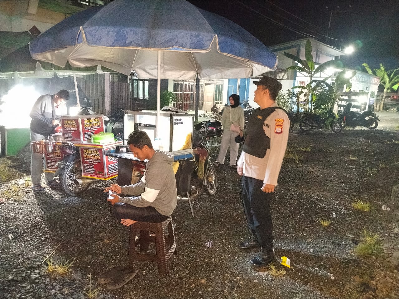 Terlihat saat patroli malam, anggota piket Polsek Pulau Petak melakukan patroli di warung warung kecil dan pemukiman penduduk Kecamatan Pulau Petak, Sabtu (25/10/2025) Malam