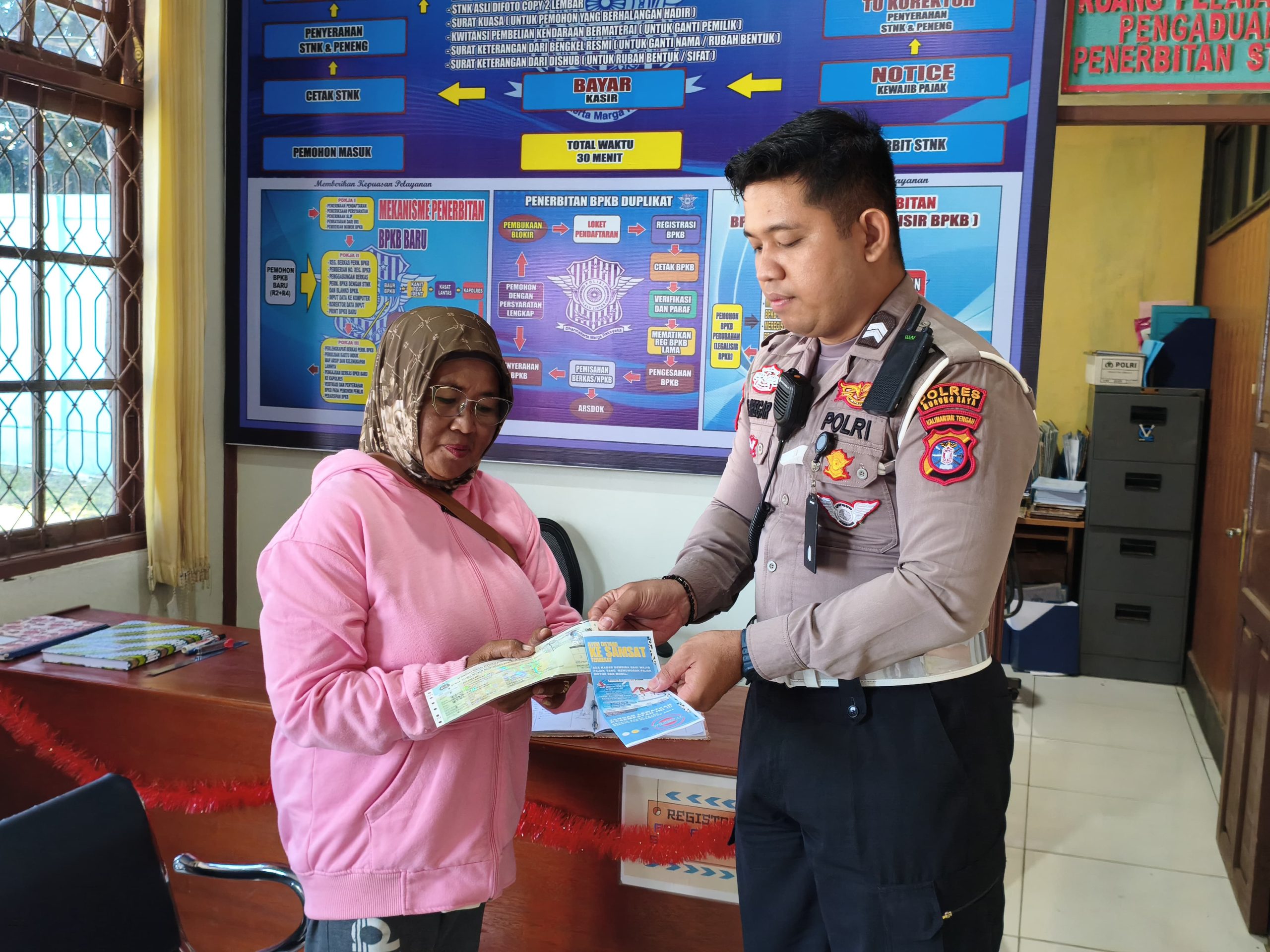 Puruk Cahu – Satuan Lalu Lintas (Satlantas) Polres Murung Raya (Mura) melaksanakan program unggulan bernama “Polantas Menyapa” sebagai upaya untuk meningkatkan kualitas pelayanan publik di bidang registrasi dan identifikasi kendaraan bermotor.