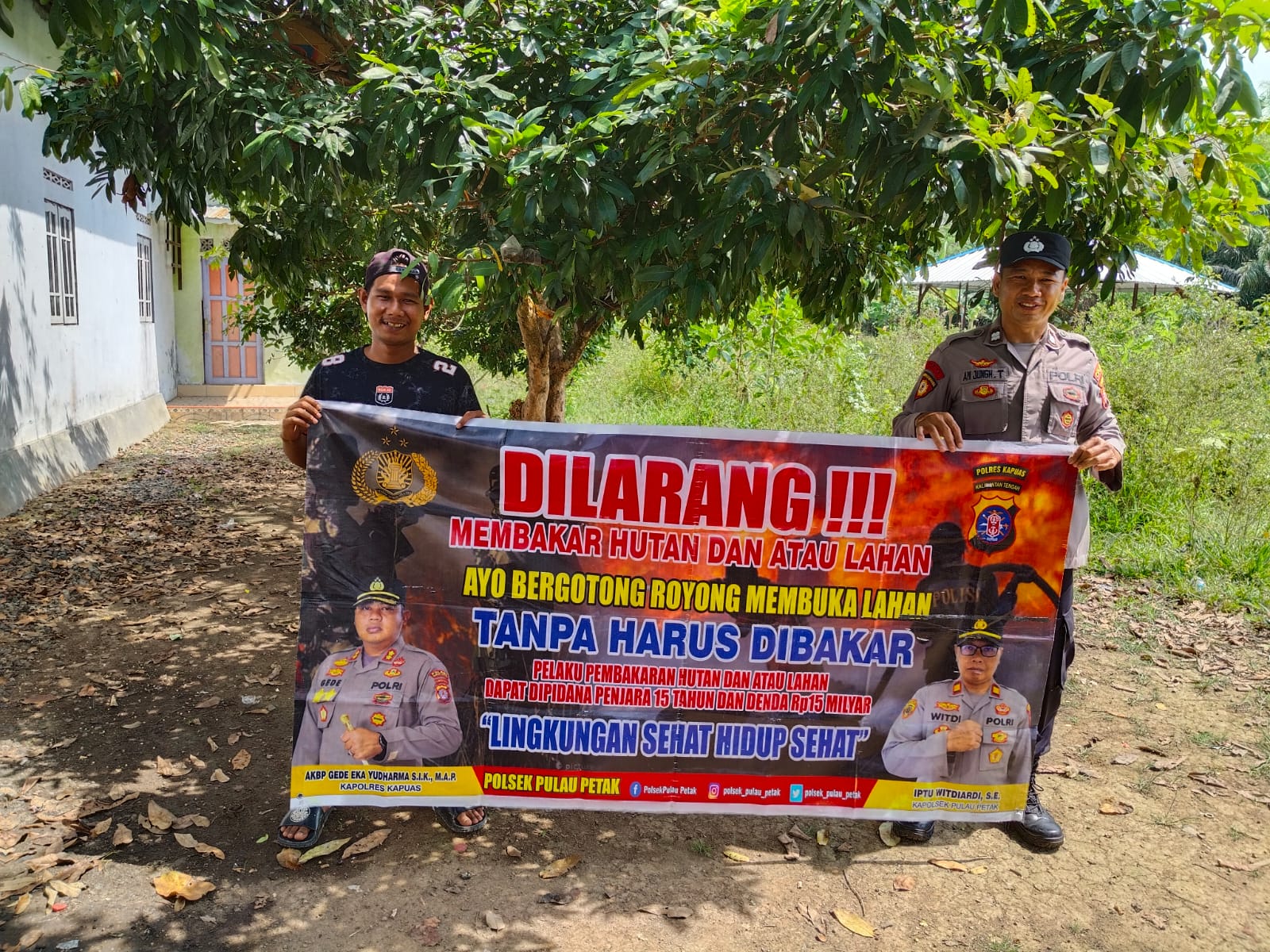 Dalam patroli tersebut personil Polsek Pulau Petak terus mensosialisasikan kepada warga untuk tidak membakar hutan dan lahan pada saat membuka lahan perkebunan serta melakukan kegiatan sosialisasi pencegahan Karhutla, dengan melakukan pembentangan spanduk Karhutla, mengajak masyarakat berperan aktif dalam upaya penanggulangan karhutla.