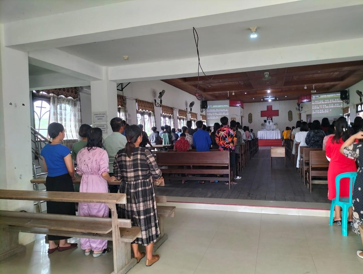 Pelaksanaan pengamanan pada pelaksanaan Kegiatan Ibadah mingguTatap Muka oleh para Jemaat berlangsung tertib dan aman.