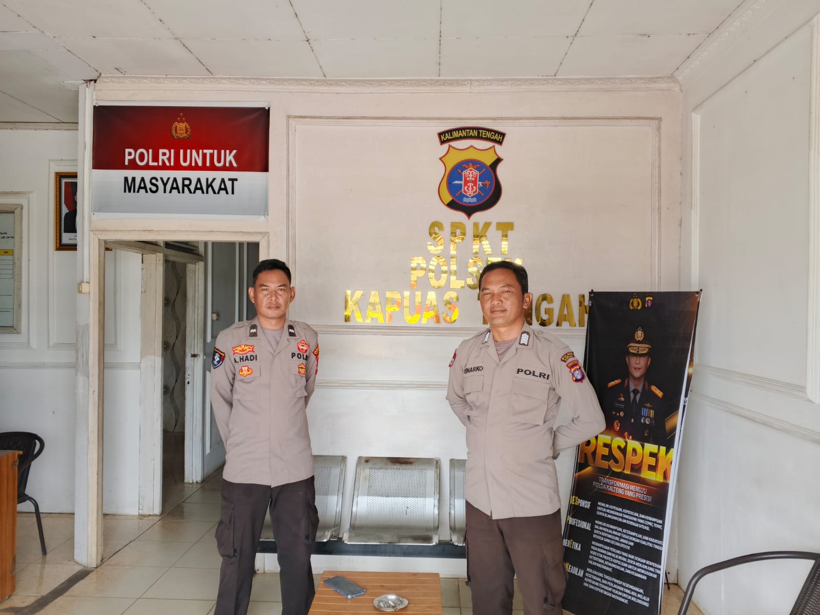 Personil yang melaksanakan giat siaga Mako Polsek Kapuas Tengah melaksanakan pelayanan kepada masyarakat seperti pelayanan laporan kehilangan dan pengaduan masyarakat.