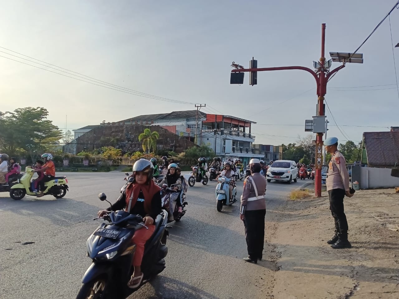 Satuan Lalu Lintas Polres Murung Raya Gatur Pagi Rutin Di Pusat Kota Puruk Cahu