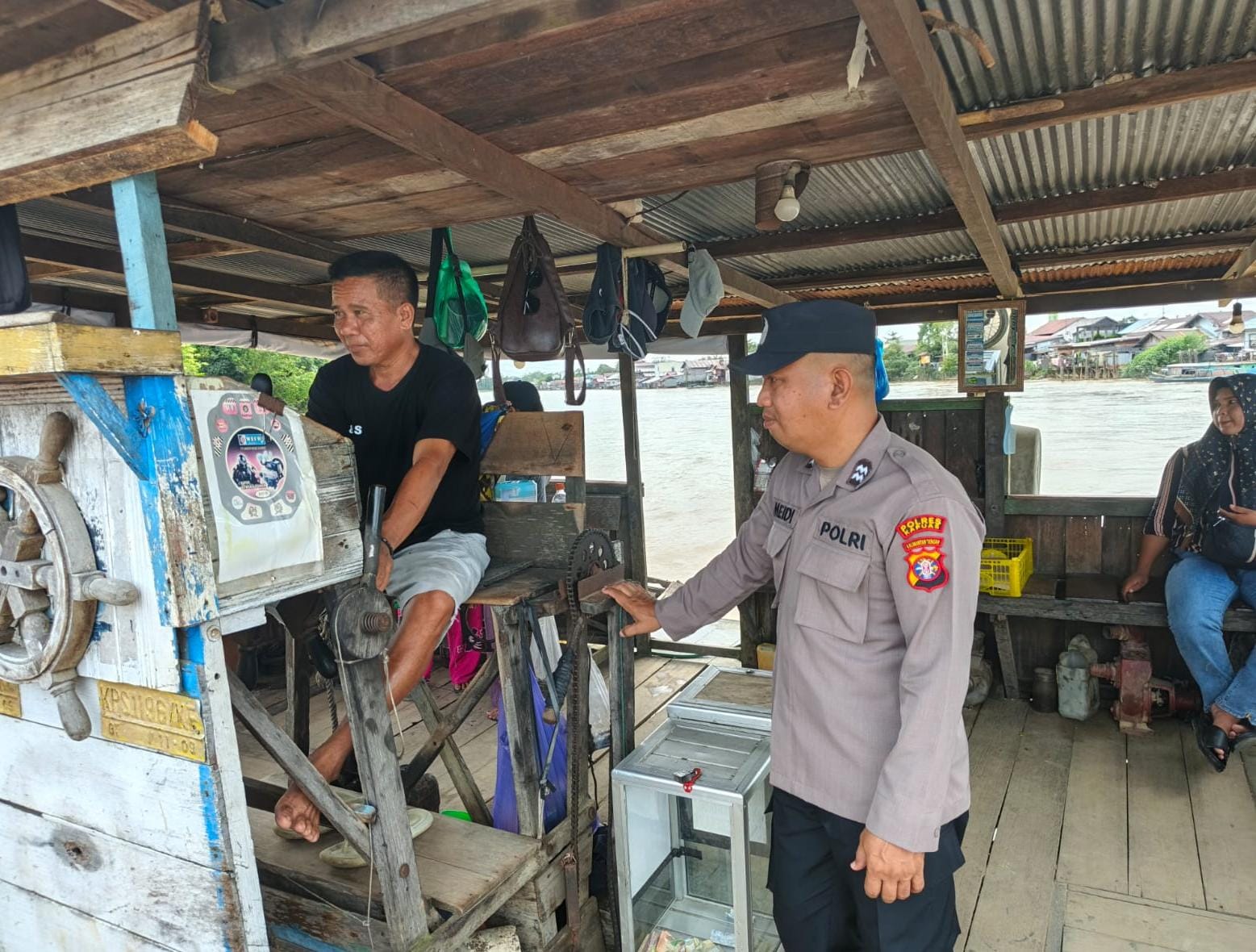 Personil Polsek berikan imbauan keselamatan kepada penumpang feri penyebrangan.