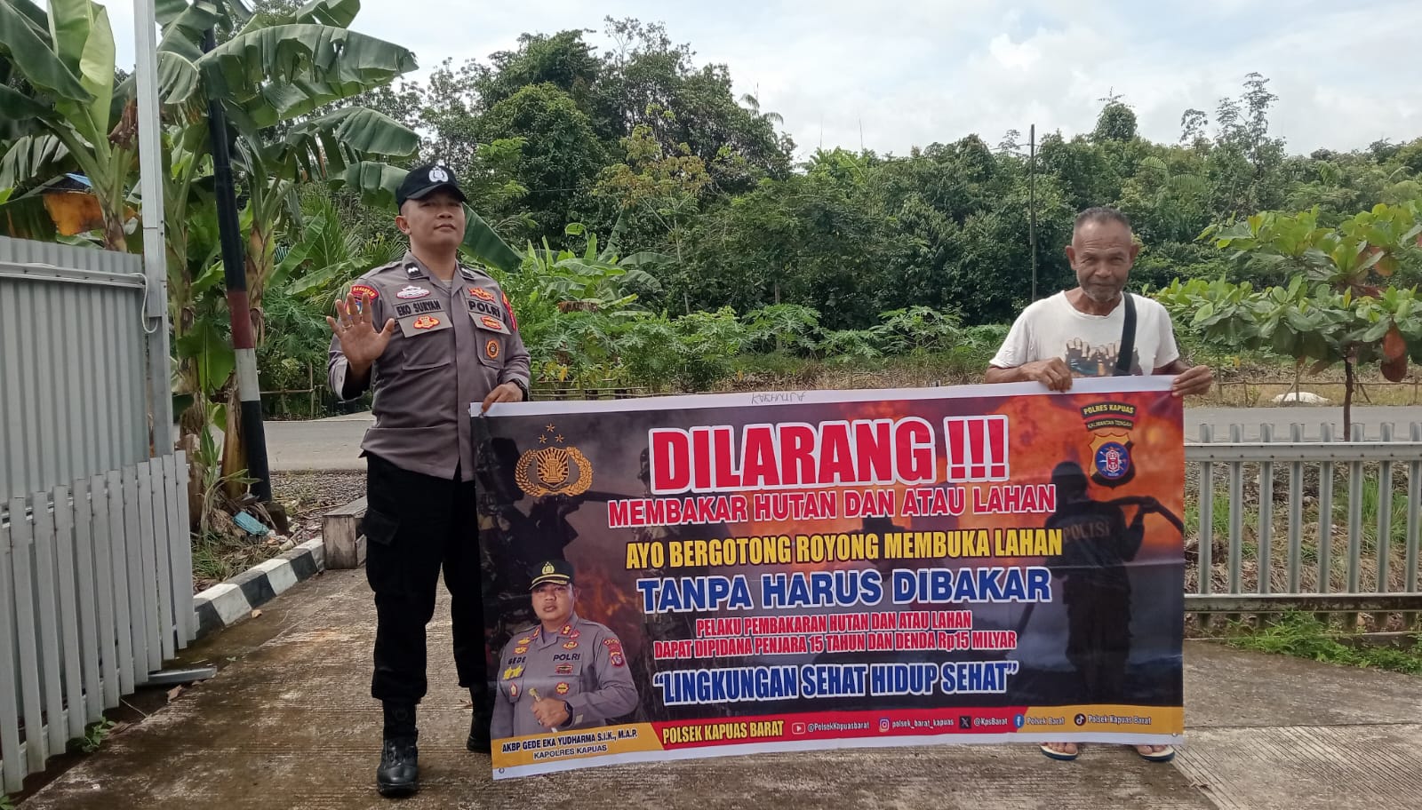 Kapolsek Kapuas Barat, Ipda Siswono Tri Soemantri, S.H., M.M., menegaskan bahwa kampanye “Buka Lahan Tanpa Bakar” (PLTB) merupakan prioritas untuk melindungi ekosistem dan kesehatan masyarakat di wilayah Kapuas Barat.