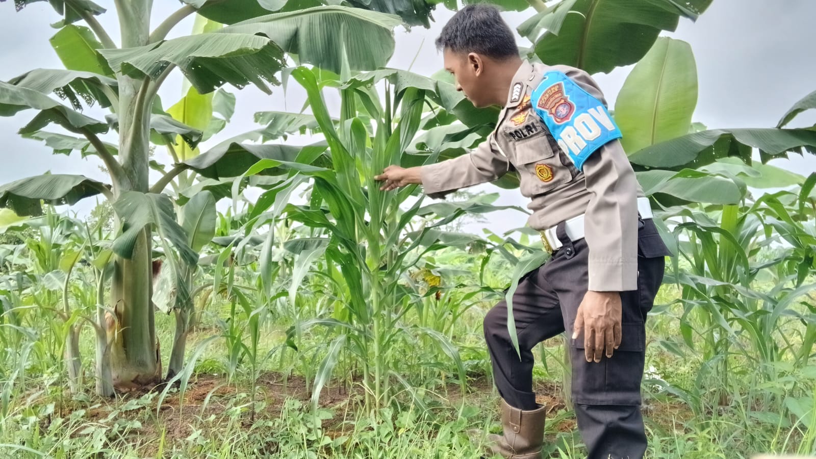 Kegiatan monitoring kali ini difokuskan pada pemantauan budidaya pisang yang dikelola secara swadaya oleh masyarakat setempat. Selain memastikan pertumbuhan tanaman berjalan baik, personel kepolisian juga berdialog dengan warga mengenai kendala di lapangan guna menjaga stabilitas ketersediaan pangan bergizi di tingkat desa.