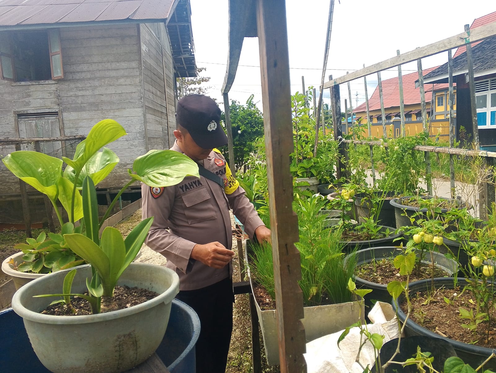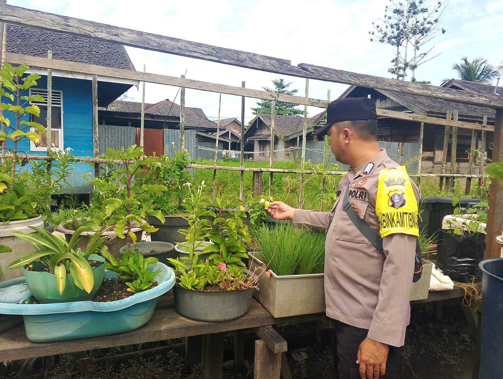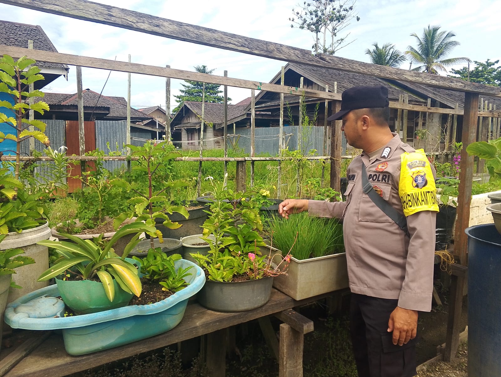 Anggota Polsek Kapuas Tengah melaksanakan kegiatan Pengecekan Pemanfaatan lahan Pekarangan di Desa Pujon