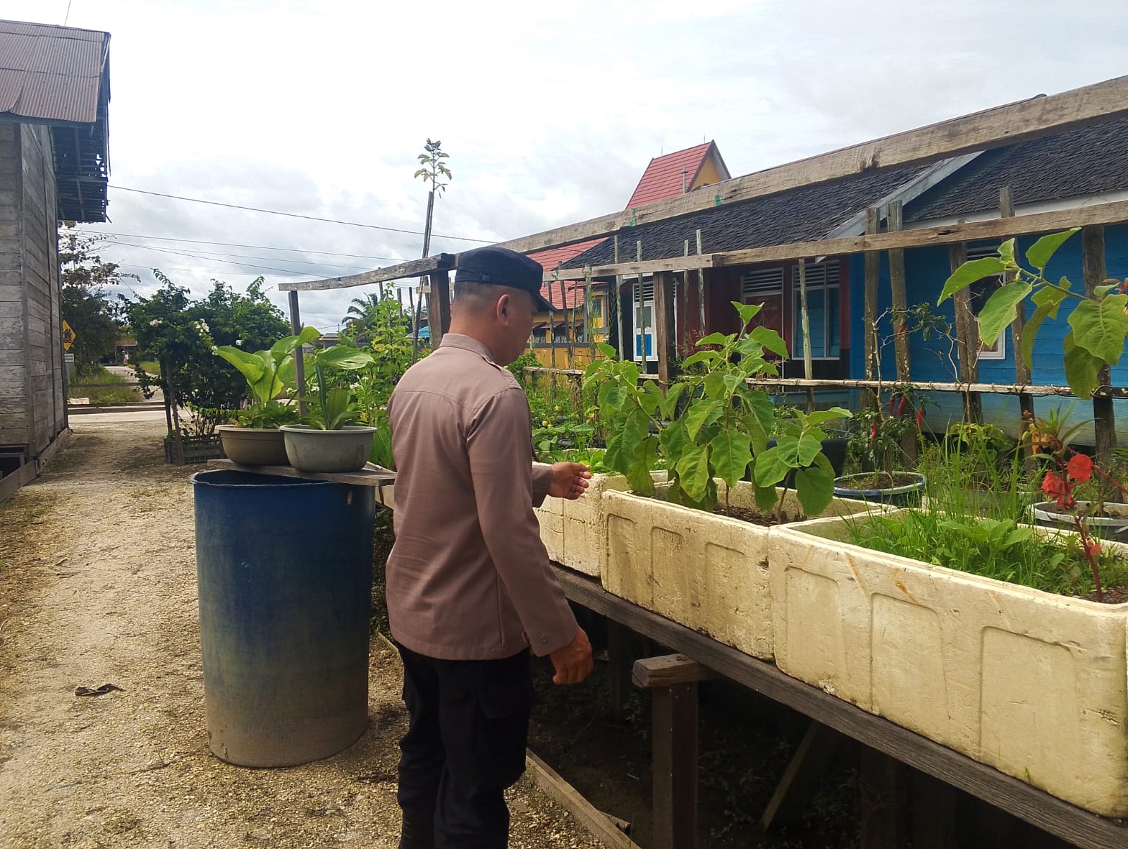 Anggota Polsek Kapuas Tengah melaksanakan kegiatan Pengecekan Pemanfaatan lahan Pekarangan di Desa Pujon