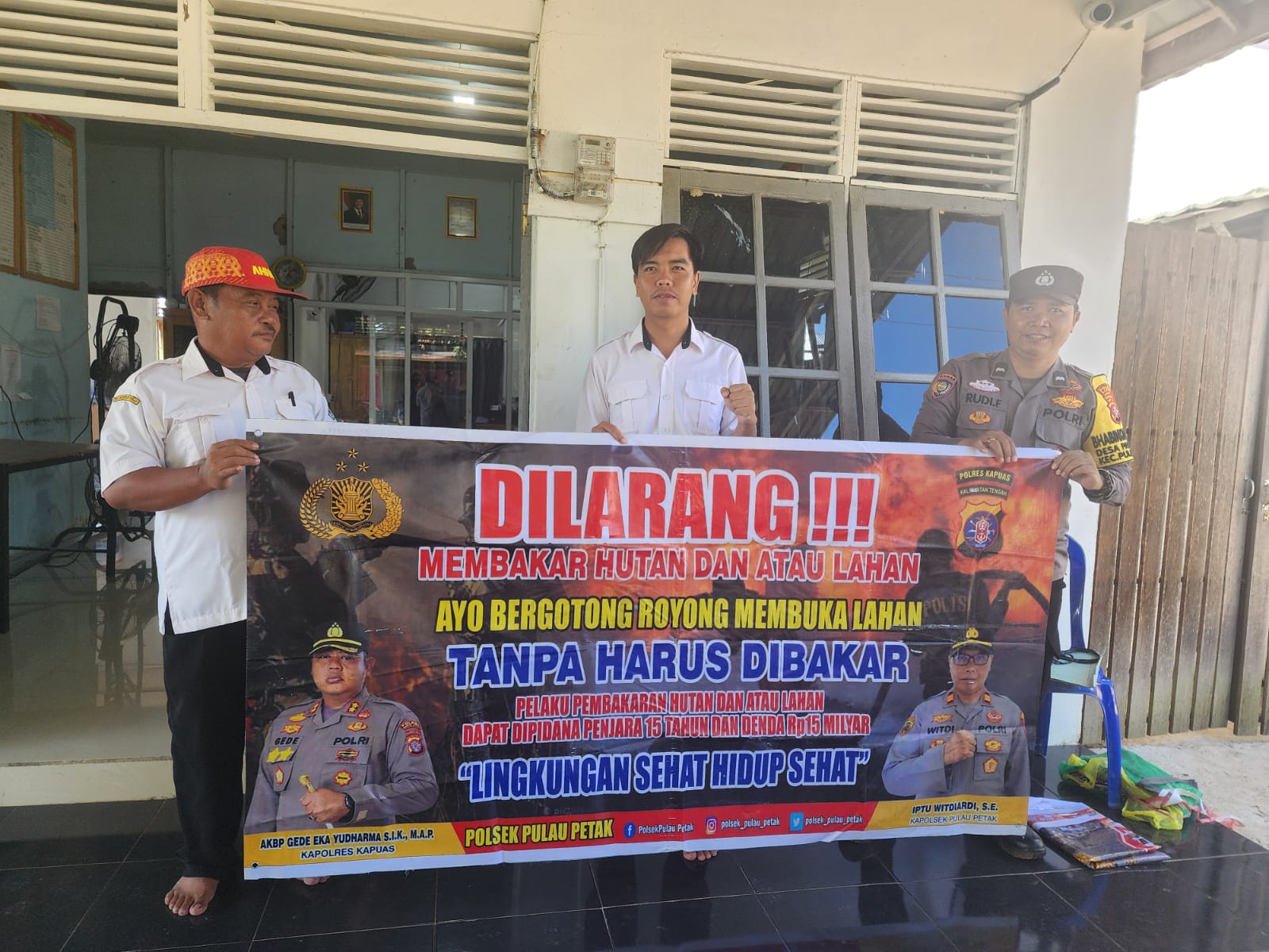 “Mari kita wujudkan Kecamatan Pulau Petak bebas dari kebakaran hutan dan lahan, udara bersih dan lingkungan asri,” ujar Kapolsek.