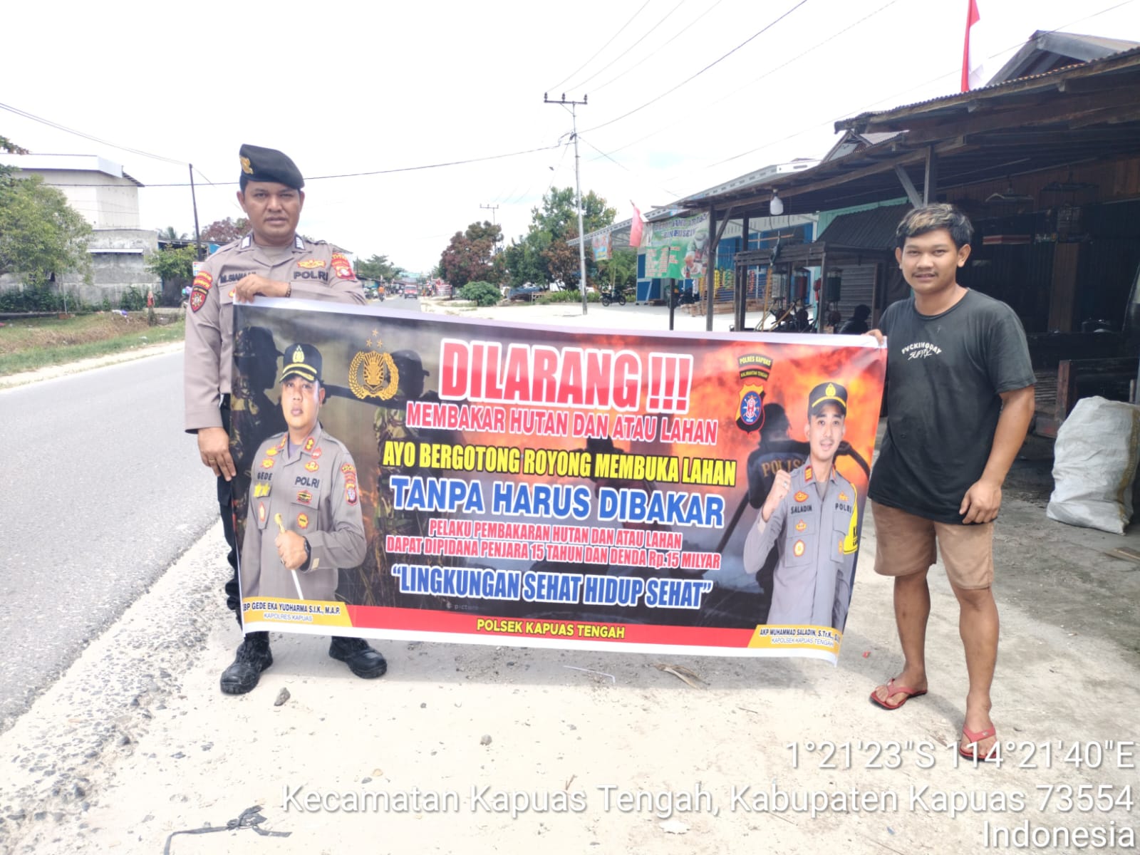 Tribratanews.kalteng.polri.go.id – Polsek Kapuas tengah jajaran Polres Kapuas Polda Kalteng,Kamis(29/01/2026) , Polsek Kapuas Tengah jajaran Polres Kapuas Provinsi Kalimanatan Tengah telah melaksanakan Kegiatan Sosialisasi Larangan Karhutla dengan spanduk dan Maklumat Kapolda Kalteng tentang Sangsi dan Pidana buka lahan dengan cara membakar, sesuai dengan Pasal 187,188 KUHP, Pasal 78 UU No. 14 Th. 1999, Pasal 108 UU No. 39 Th. 2014, dan Pasal 25 Perda Kalteng No. 5 Th. 2003 Dengan ancaman Pidana 15 Tahun dan denda 15 Milyar.