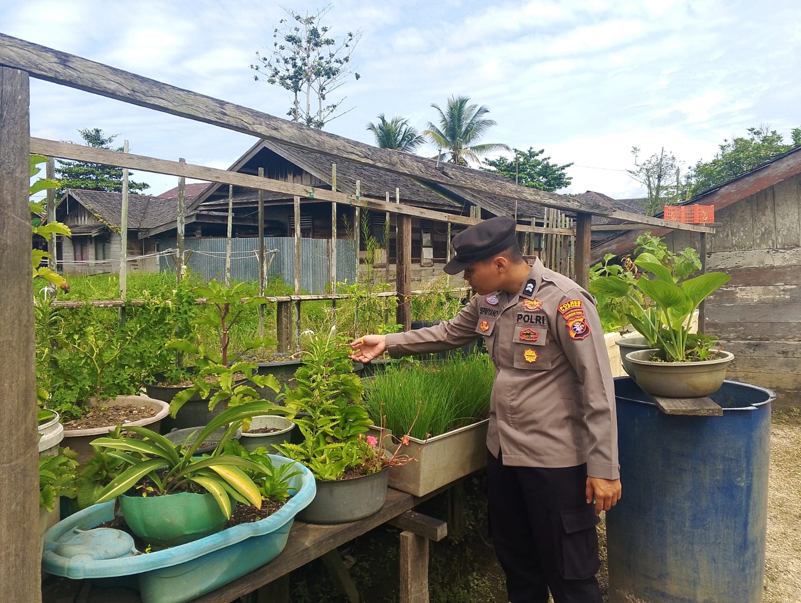 Anggota Polsek Kapuas Tengah melaksanakan kegiatan Pengecekan Pemanfaatan lahan Pekarangan di Desa Pujonn