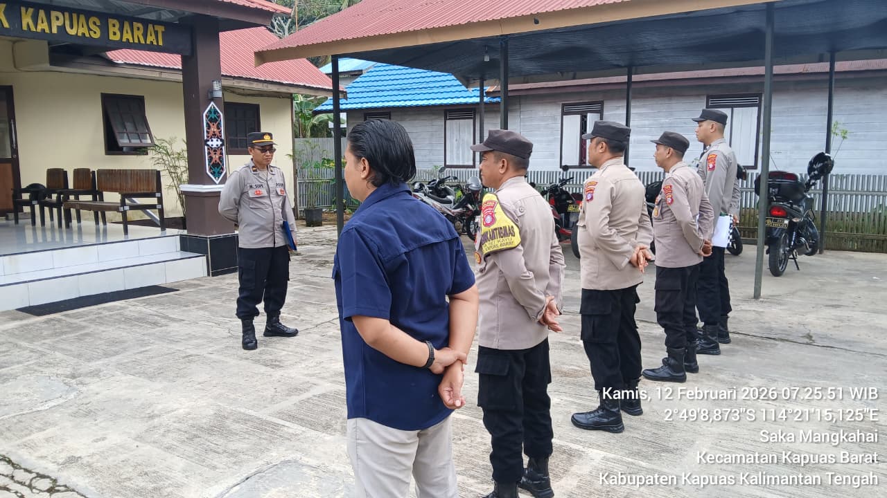Kapuas – Personel Polsek Kapuas Barat melaksanakan apel pagi di halaman Mako Polsek Kapuas Barat, Jalan Bhayangkara No. 55, Kelurahan Mandomai, Kecamatan Kapuas Barat, Kabupaten Kapuas, Kalimantan Tengah, Kamis (12/2/2026) pukul 07.30 WIB. Apel tersebut dipimpin langsung oleh Wakapolsek Kapuas Barat, IPDA Moh Sopii.