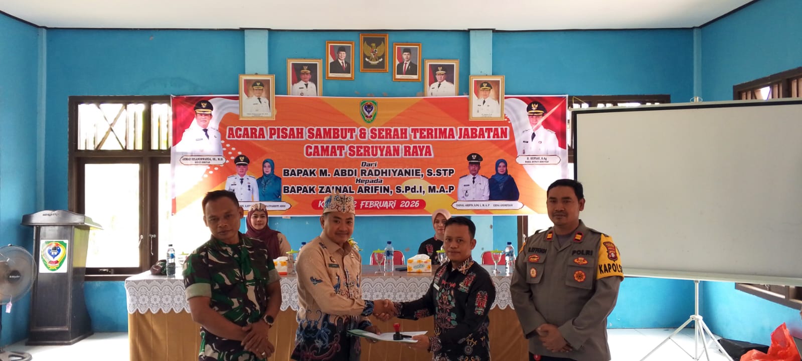 Pada hari Kamis, 12 Februari 2026 pukul 10.00 WIB, bertempat di Aula Kecamatan Seruyan Raya, telah dilaksanakan kegiatan Serah Terima Jabatan (Sertijab) Camat Seruyan Raya dari pejabat lama kepada pejabat baru. Kegiatan berlangsung dengan khidmat, tertib, dan dalam situasi yang aman serta kondusif.