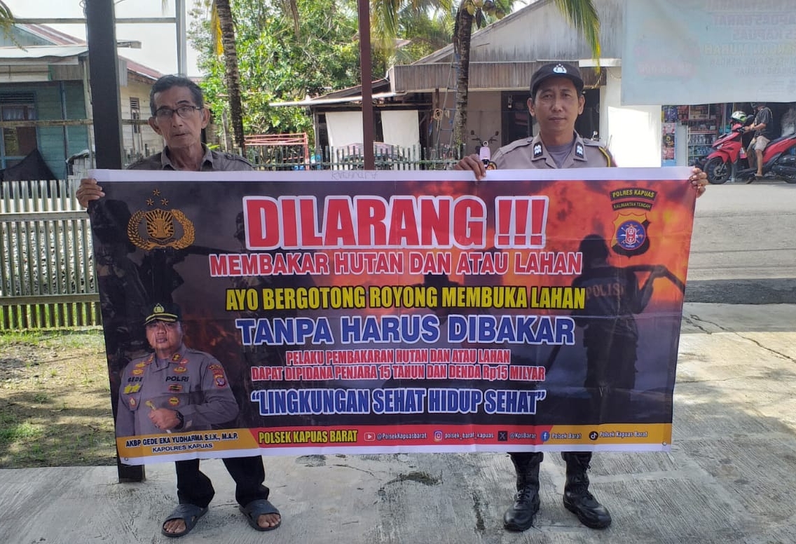Himbauan dilakukan melalui kampanye “Buka Lahan Tanpa Bakar” dan ajakan membudayakan pembukaan lahan secara gotong royong. Petugas menyampaikan pesan tersebut menggunakan spanduk serta Maklumat Kapolda Kalimantan Tengah yang ditujukan langsung kepada warga di wilayah hukum Polsek Kapuas Barat.