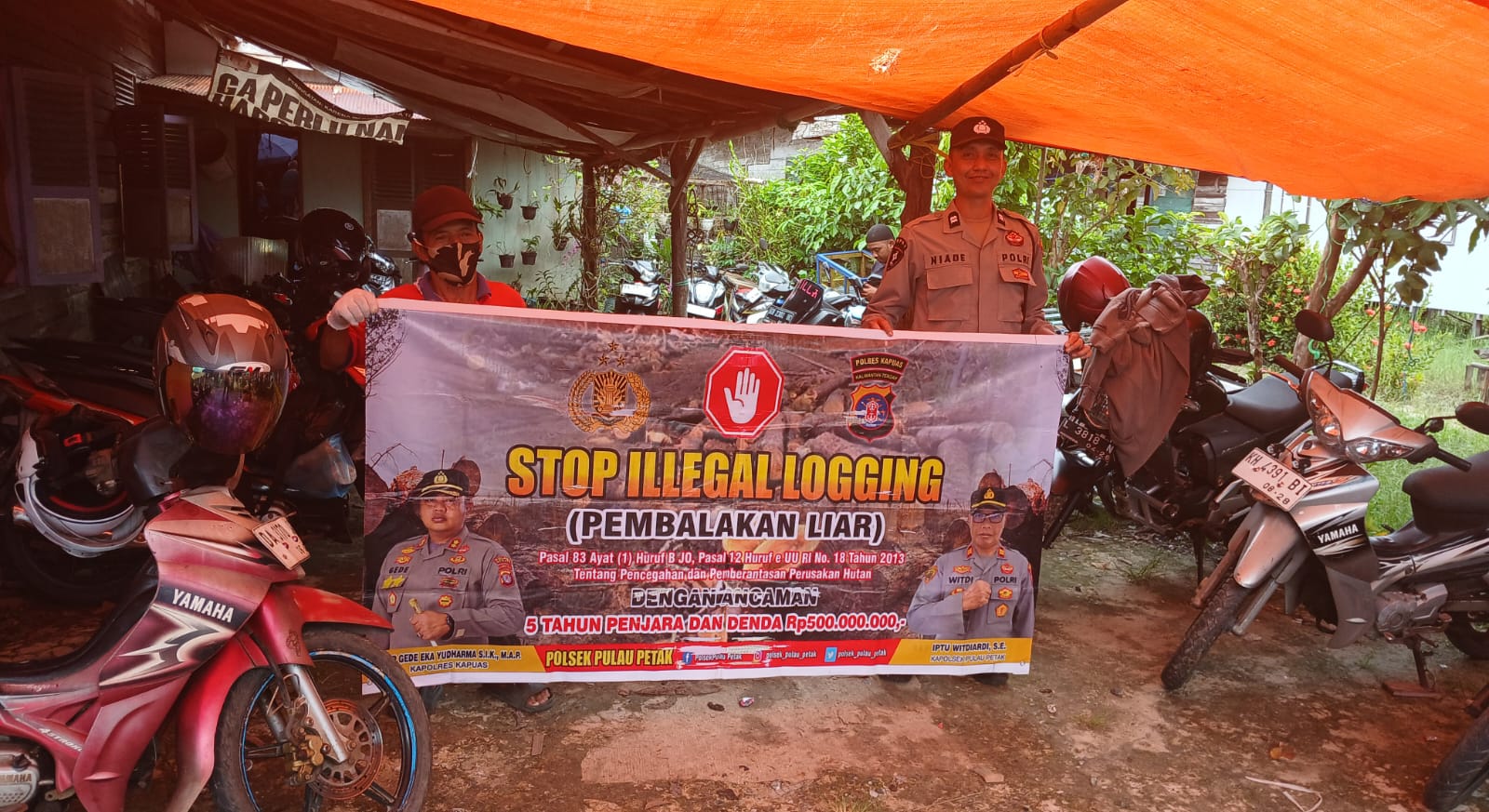 Kapolsek Pulau Petak  Iptu Witdiardi, S.E.,mengatakan untuk kegiatan hari ini dilaksanakan himbauan kepada Masyarakat Dalam Rangka pencegahan terjadinya pembalakan liar beserta penyampaian pasal, sanksi kurungan dan denda yang menjerat pelaku ilegal loging dan dengan menggunakan spanduk stop stop ilegal loging.