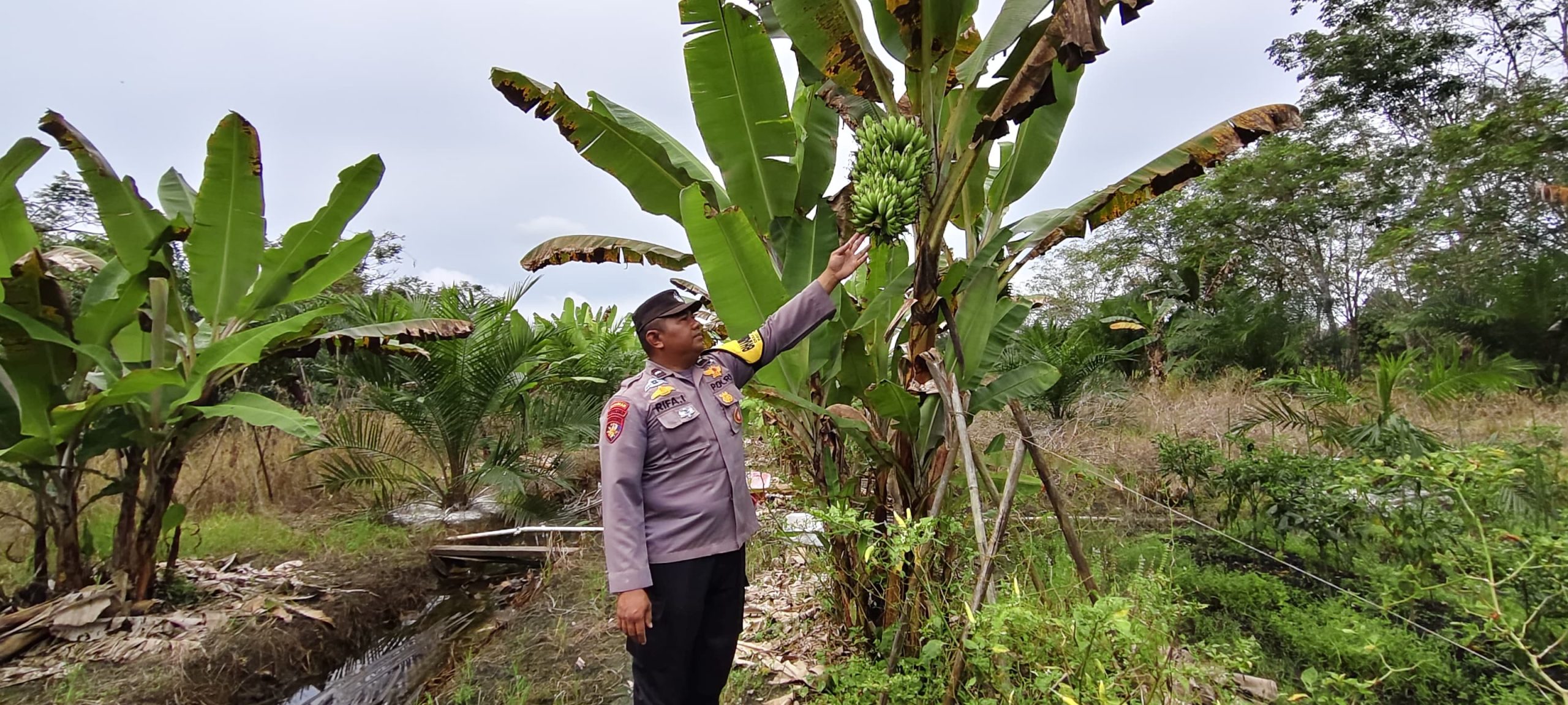 Polsek Kapuas Hilir_Bhabinkamtibmas Desa Saka Batur Polsek Kapuas Hilir Aipda M.Rifa’i.SH melaksanakan kegiatan Pengecekan Lokasi pemanfaatan Lahan Pekerangan milik warga yang ditanami berbagai jenis sayuran lokal seperti kacang panjang, terong, singkong , Lombok,Timun, Pembibitan Lombok, tanaman padi maupun buah-buahan seperti cempedak, pisang maupun dijadikan kolam ikan,ternak itik,ayam,maupun ditanami tanaman bermanfaat lainnya berlokasi di jl.Malang Pamangkih Desa Sakabatur Rt. 03 Kec.Kapuas Hilir Kab. Kapuas Prov.Kalteng.Jumat (13/02/2026)