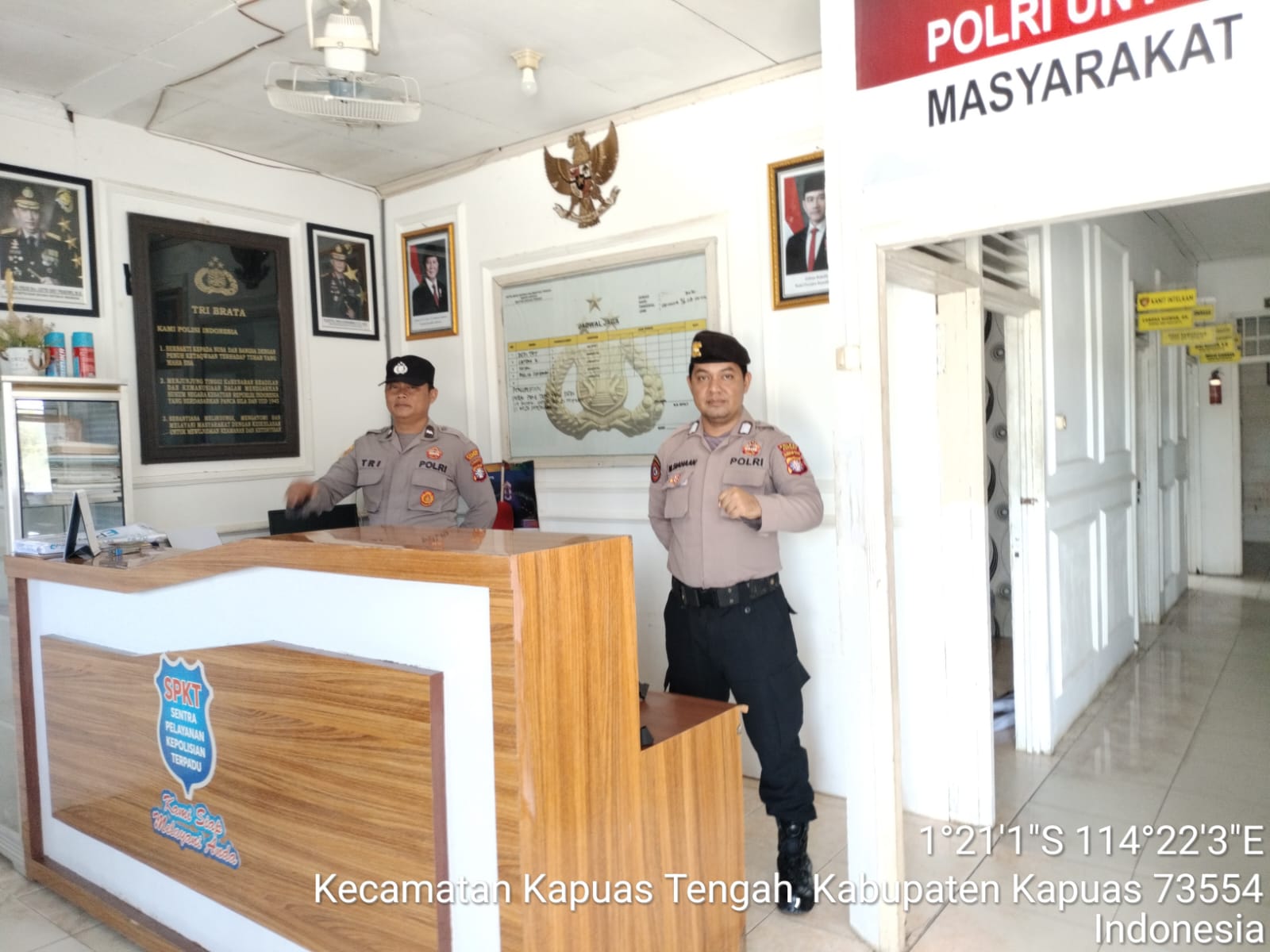 Personil Piket Jaga Polsek Kapuas Tengah melayani Warga masyarakat.