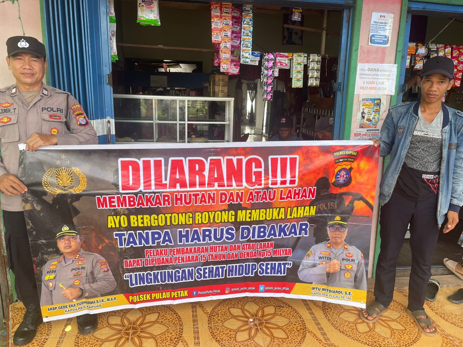 Dalam patroli tersebut personil Polsek Pulau Petak terus mensosialisasikan kepada warga untuk tidak membakar hutan dan lahan pada saat membuka lahan perkebunan serta melakukan kegiatan sosialisasi pencegahan Karhutla, dengan melakukan pembentangan spanduk Karhutla, mengajak masyarakat berperan aktif dalam upaya penanggulangan karhutla.