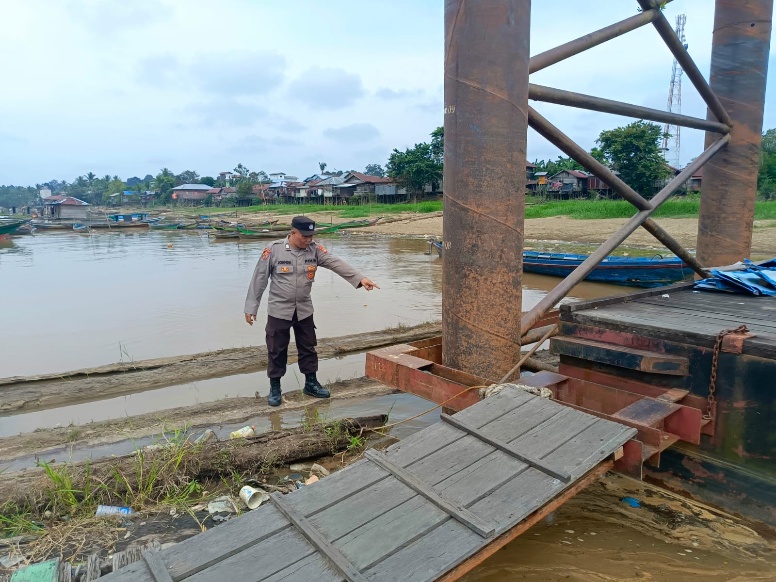 Polres Barsel – Mengantisipasi kenaikan air kiriman dari hulu Sungai Barito, personel Polsek Dusun Selatan (Dusel), Polres Barito Selatan (Barsel), Polda Kalteng, melaksanakan patroli mengecek debit air di bantaran Sungai Barito, Kota Buntok, Selasa (17/2/2026) pagi.