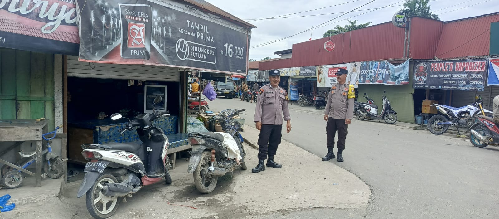 Personil polsek kapuas tengah lakuakan rutin Patroli ke pasar harian Pujon desa Pujon.